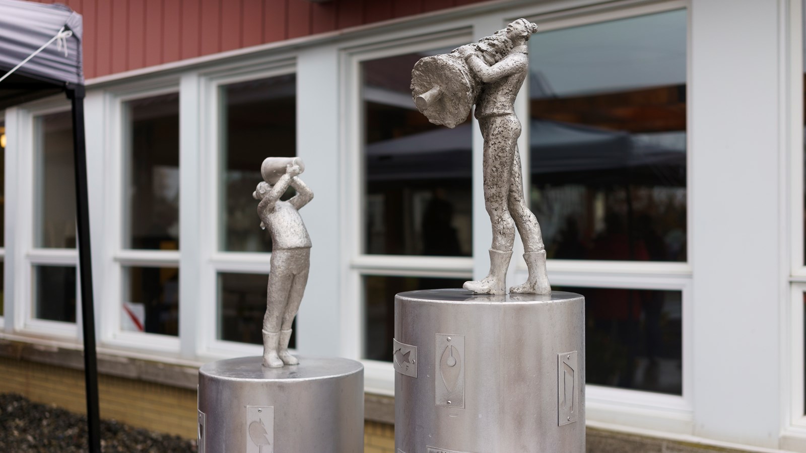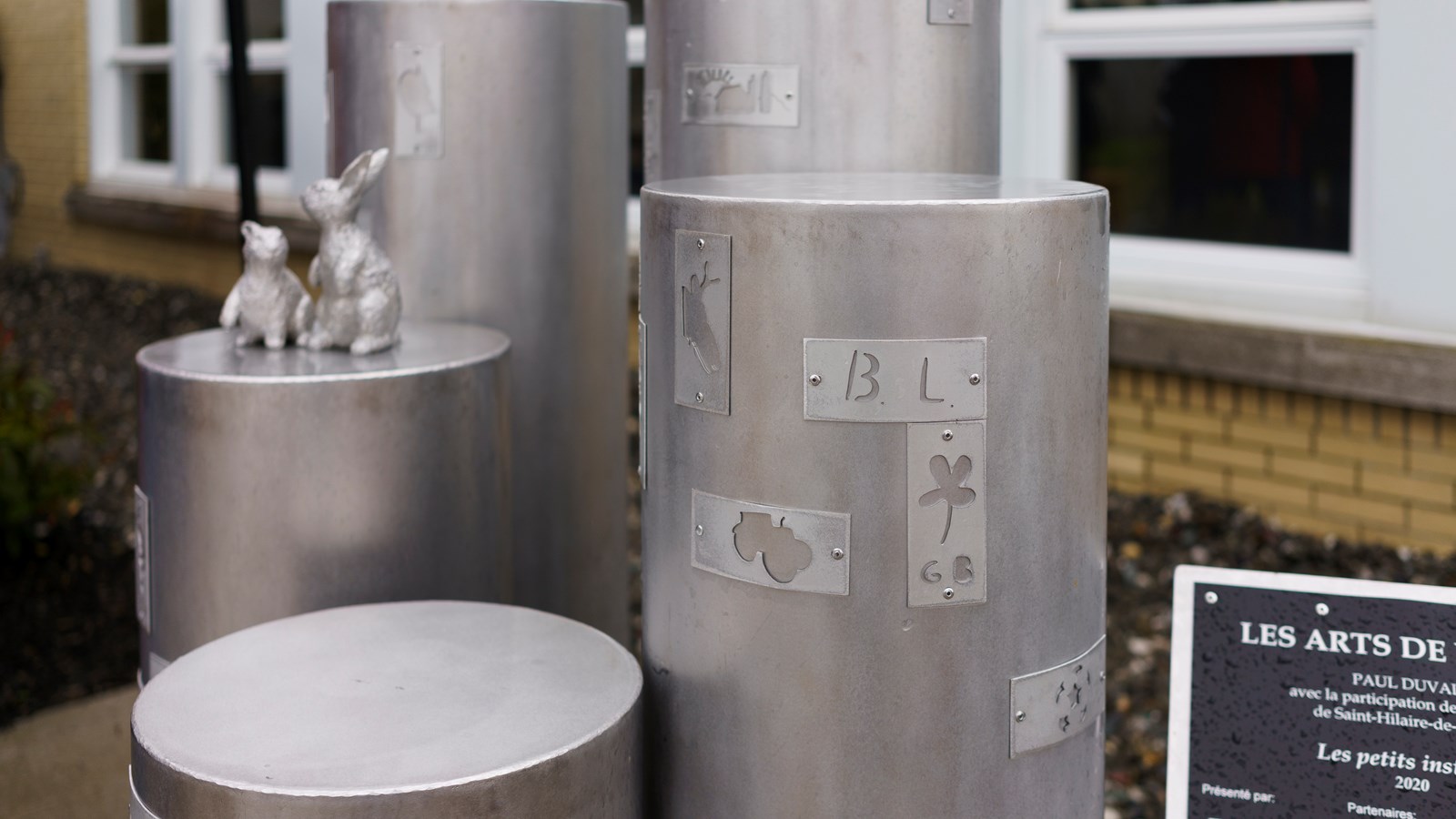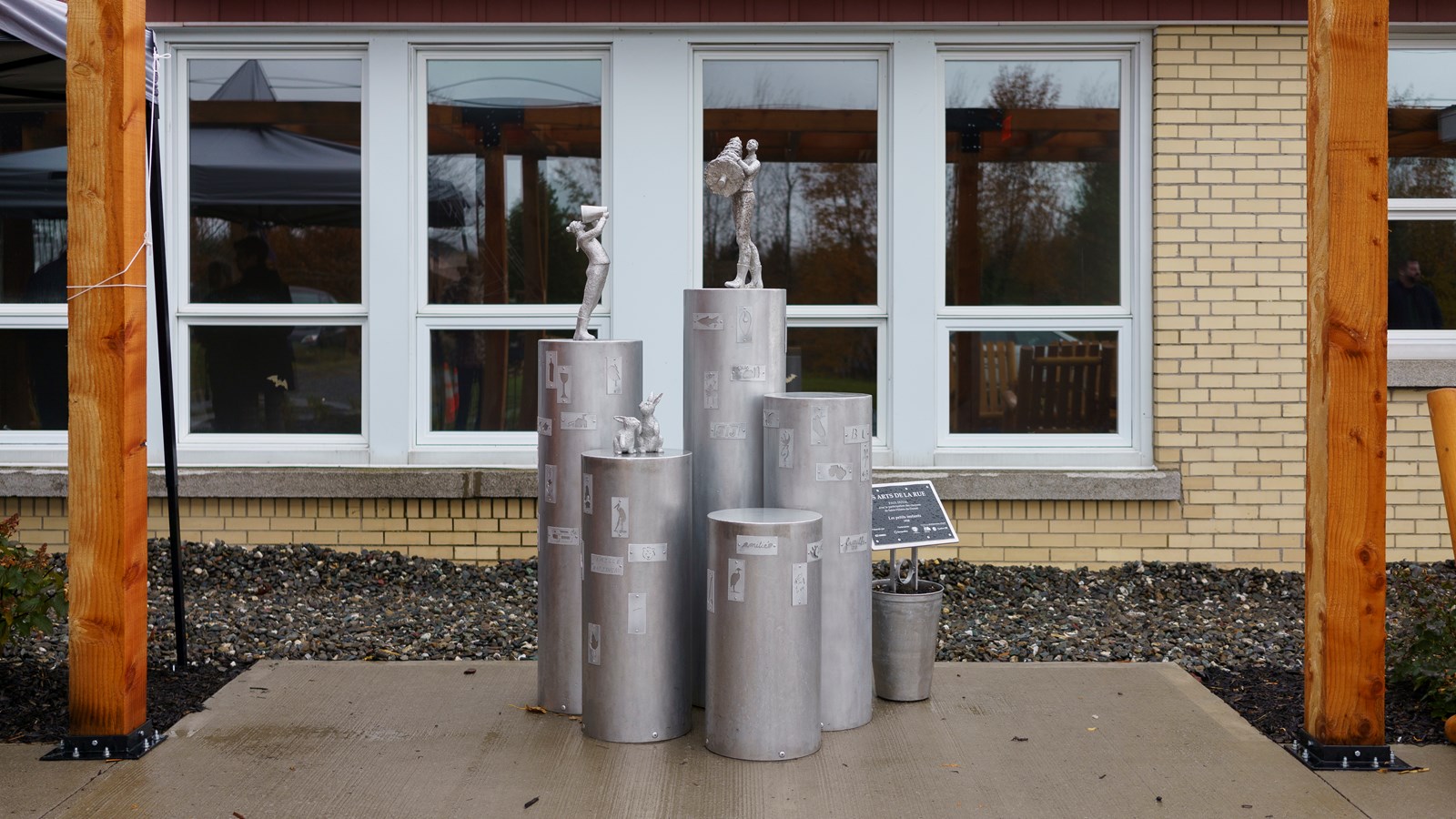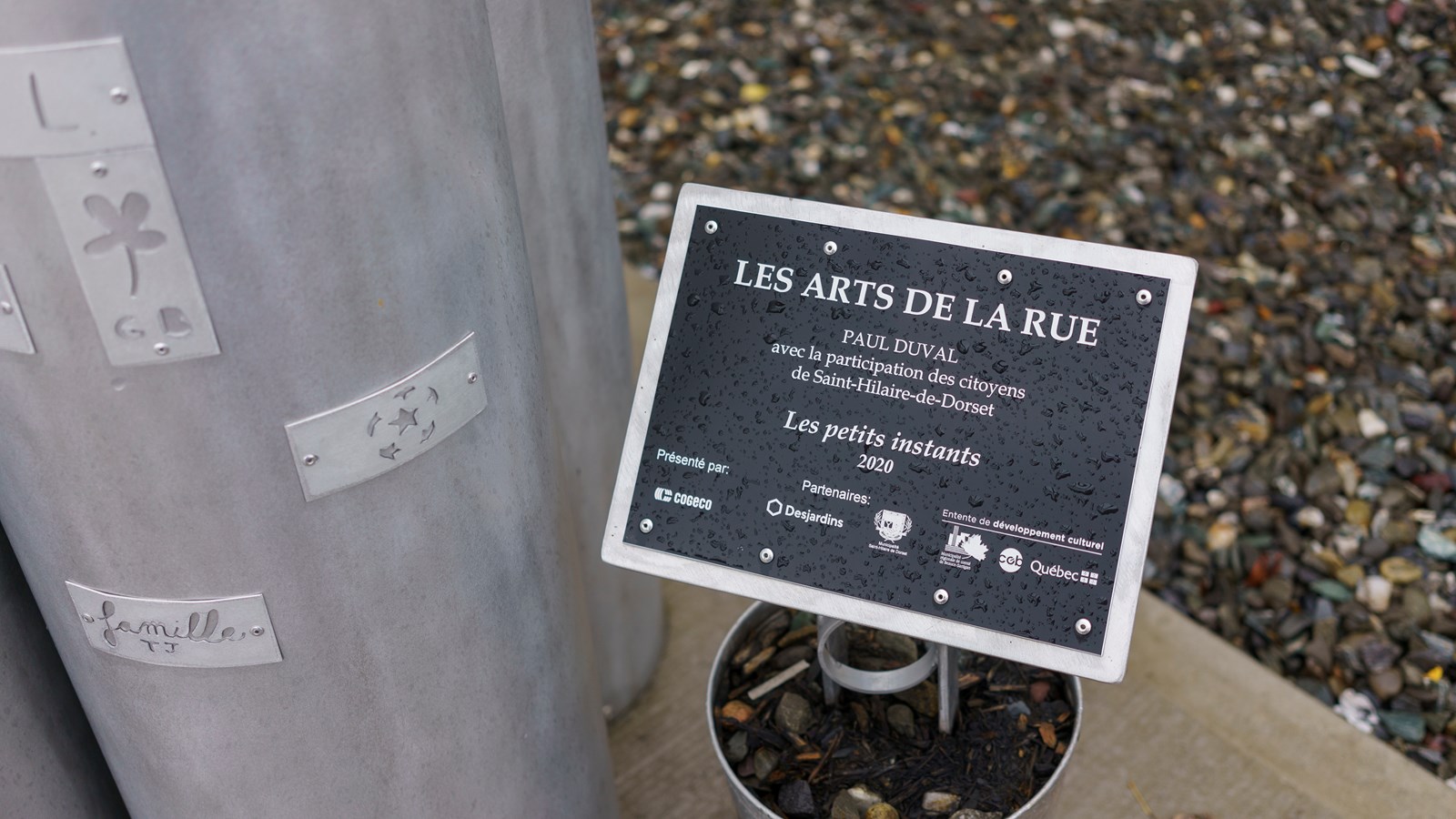 Sous l'abri se trouve aussi une sculpture de Paul Duval, réalisée en collaboration avec les citoyens de Saint-Hilaire-de-Dorset, « Les petits instants ».