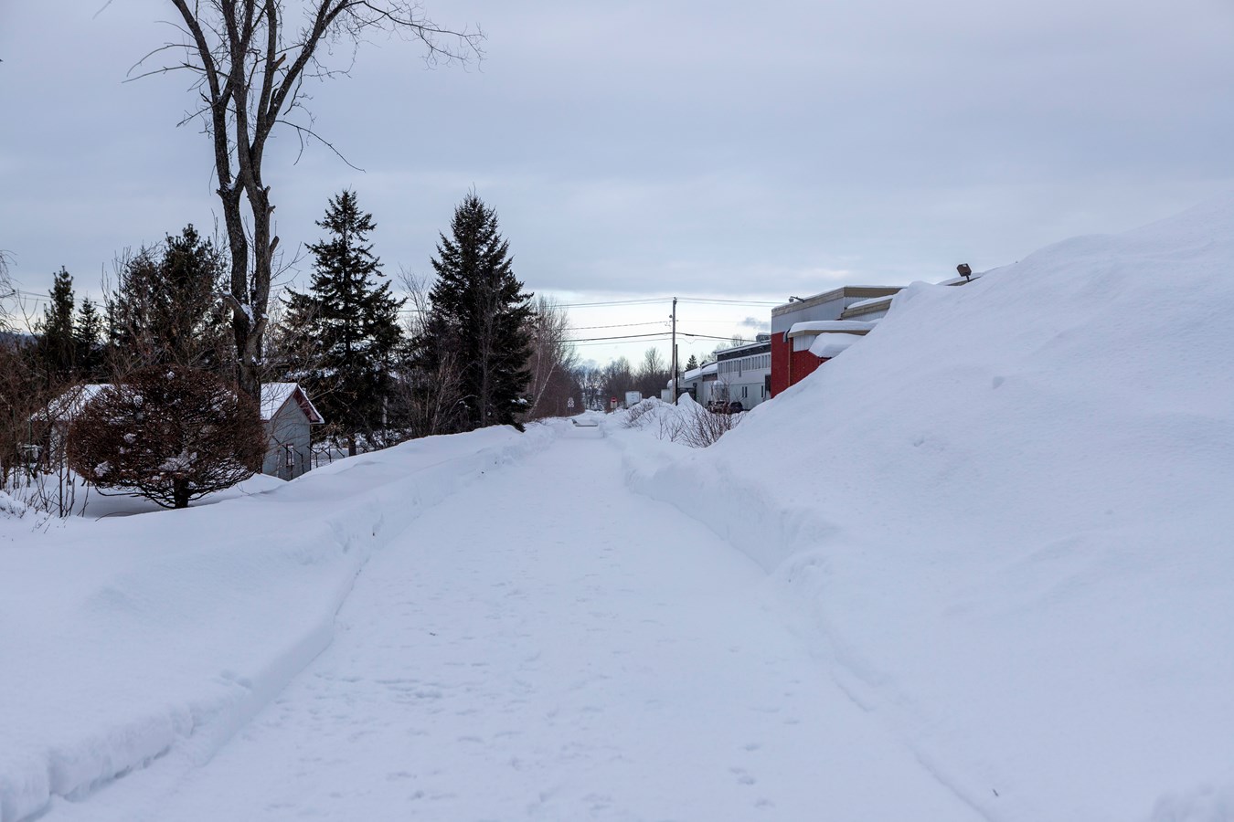 Actuellement, Beauceville déneige la partie de la piste cyclable entre le nouvel aréna et la 125e Rue dans le but que les gens puissent y marcher et cela semble bien fonctionner.