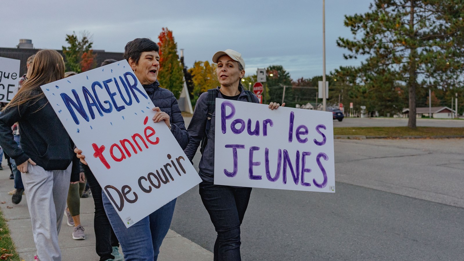 Son message était le même pour la plupart des manifestants qui portaient fièrement des pancartes sur lesquelles on pouvait lire entre autres: « La population en otage », « Pour les jeunes », « Nageur tanné de courir », « On veut des jeux d’eau », etc.