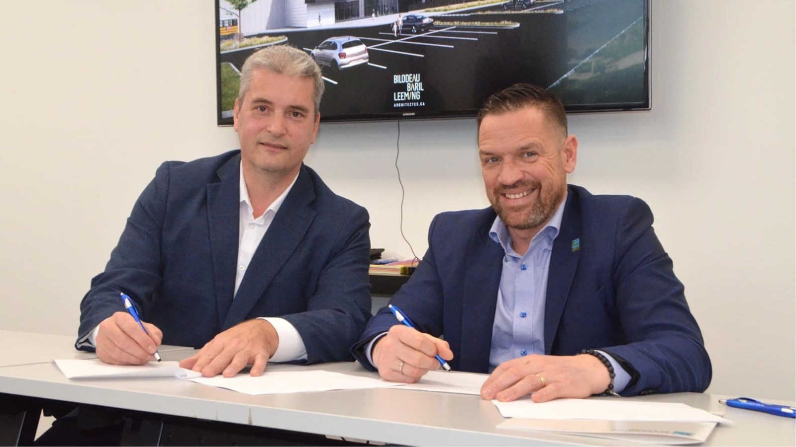 L'annonce du projet a été faite ce matin, en conférence de presse, par le directeur général du groupe Marmax Consortium, Louis Simard, et le maire de Saint-Lambert-de-Lauzon, Olivier Dumais, dont la Municipalité sera la locataire prioritaire, en vertu de l'entente signée entre les deux parties.