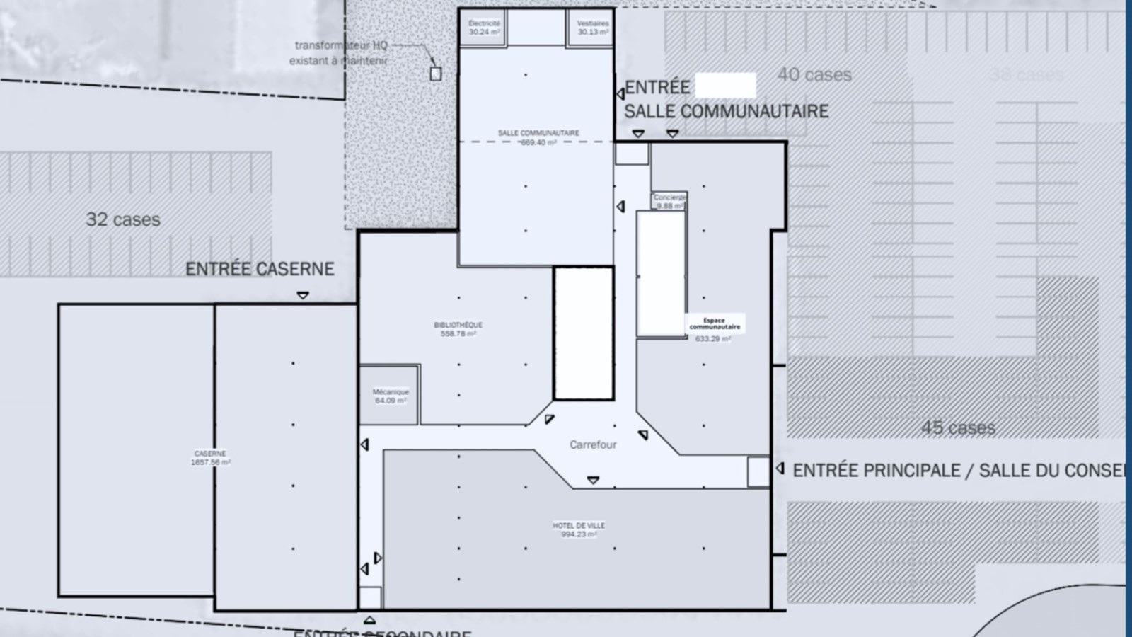 L'édifice sera divisé en cinq sections pour accueillir l’hôtel de ville, la bibliothèque Madeleine-Doyon, la caserne de sécurité incendie, une salle multifonctionnelle et des locaux et espaces pour les organismes du milieu.