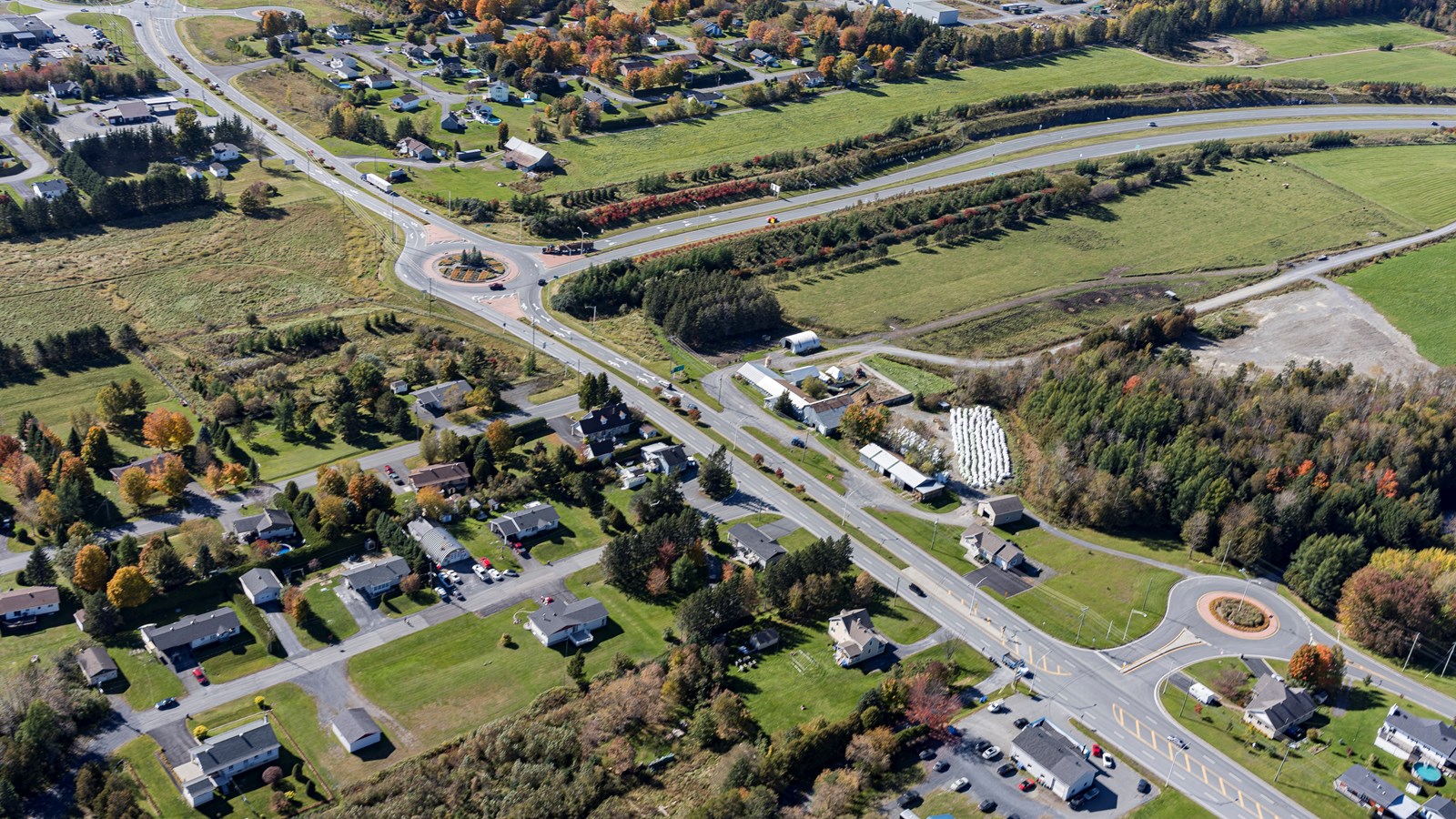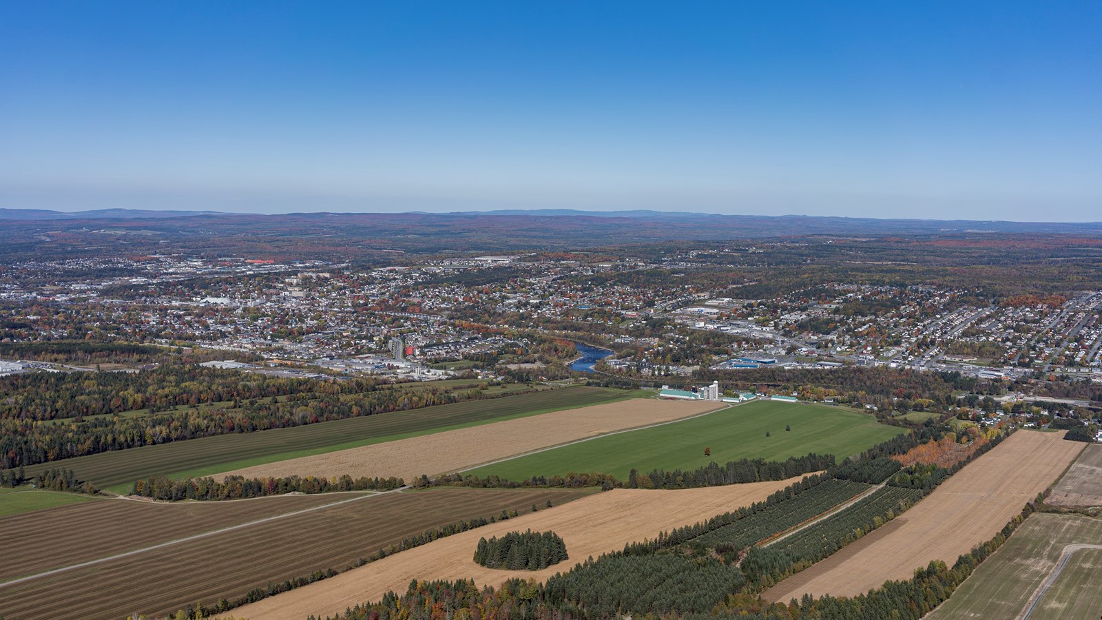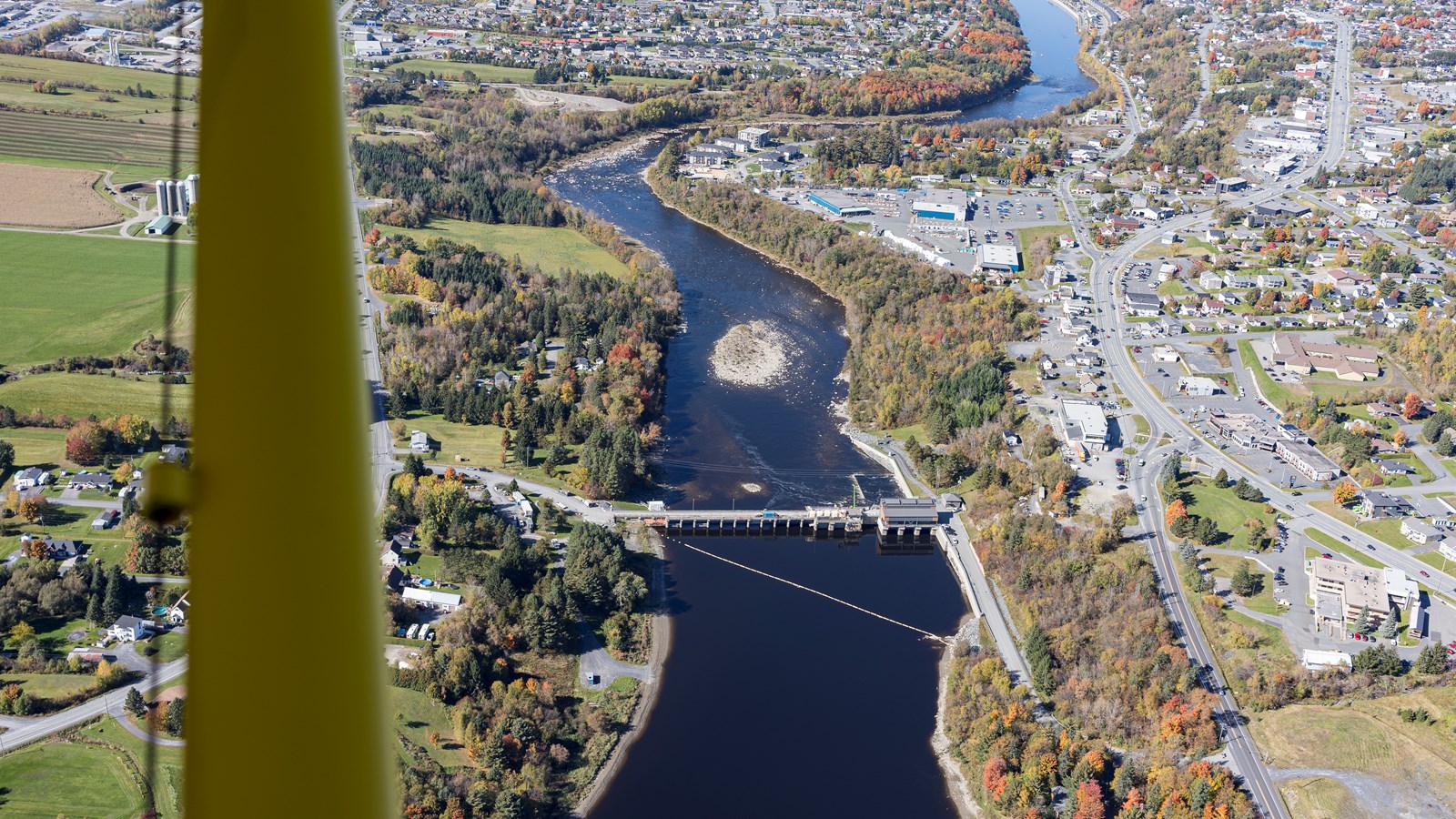 On est passé au-dessus du Barrage Sartigan, on a remonté la ville de Saint-Georges par le côté Est, avant de se rendre jusqu’au lac Poulin et de revenir jusqu’à l’aéroport par le côté Ouest de la rivière Chaudière. On a vu notamment le Cégep Beauce-Appalaches, les installations de l’entreprise Boa Franc, le rond-point de l’autoroute, les nombreuses piscines des quartiers résidentiels et les maisons perdues au milieu des bois. De là-haut, on se rend compte à quel point les terrains et les champs sont bien entretenus.