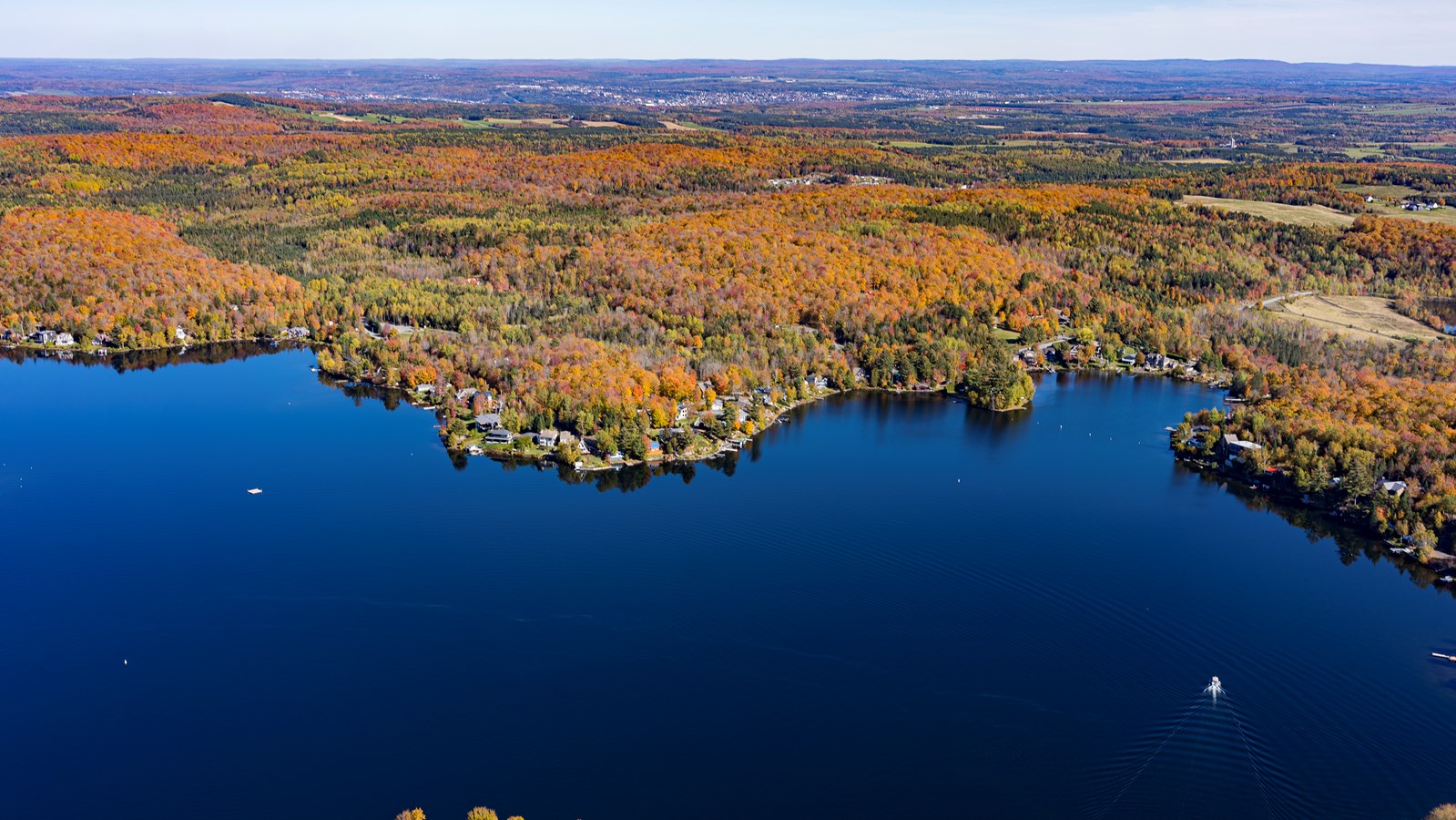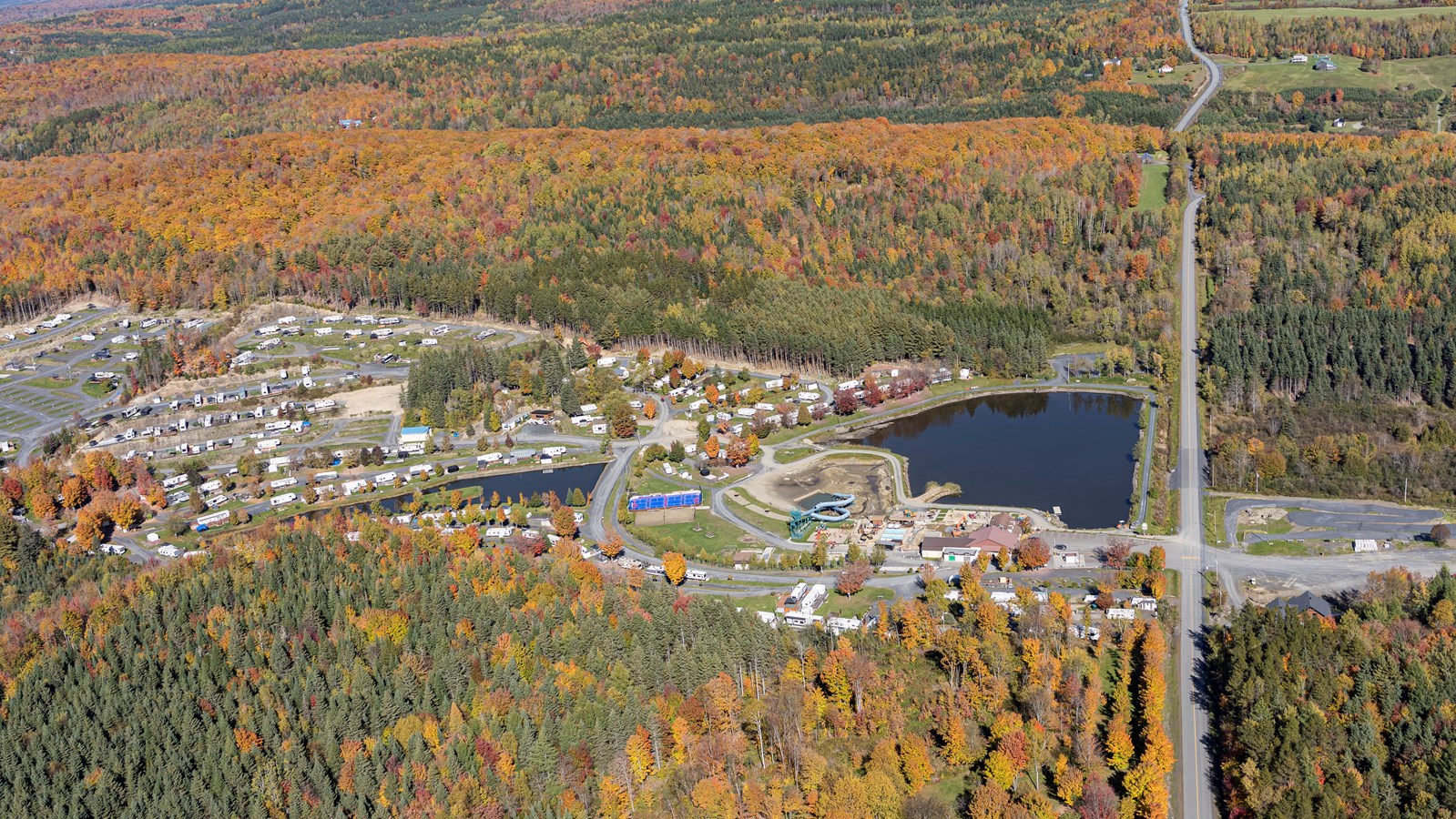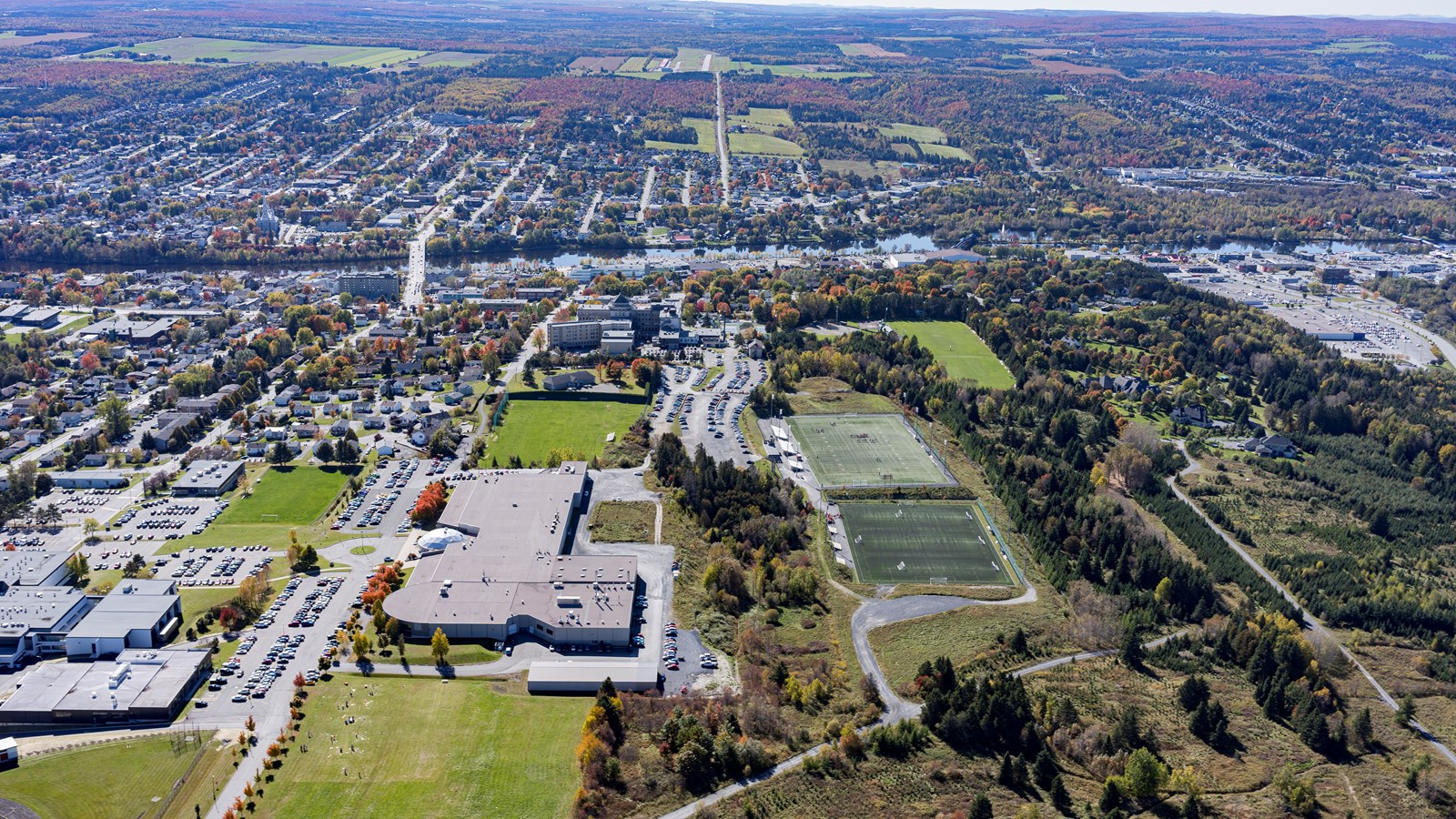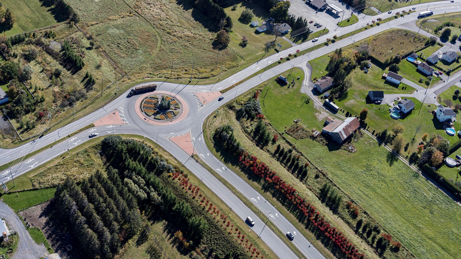 On est passé au-dessus du Barrage Sartigan, on a remonté la ville de Saint-Georges par le côté Est, avant de se rendre jusqu’au lac Poulin et de revenir jusqu’à l’aéroport par le côté Ouest de la rivière Chaudière. On a vu notamment le Cégep Beauce-Appalaches, les installations de l’entreprise Boa Franc, le rond-point de l’autoroute, les nombreuses piscines des quartiers résidentiels et les maisons perdues au milieu des bois. De là-haut, on se rend compte à quel point les terrains et les champs sont bien entretenus.
