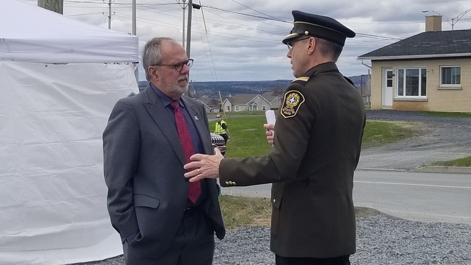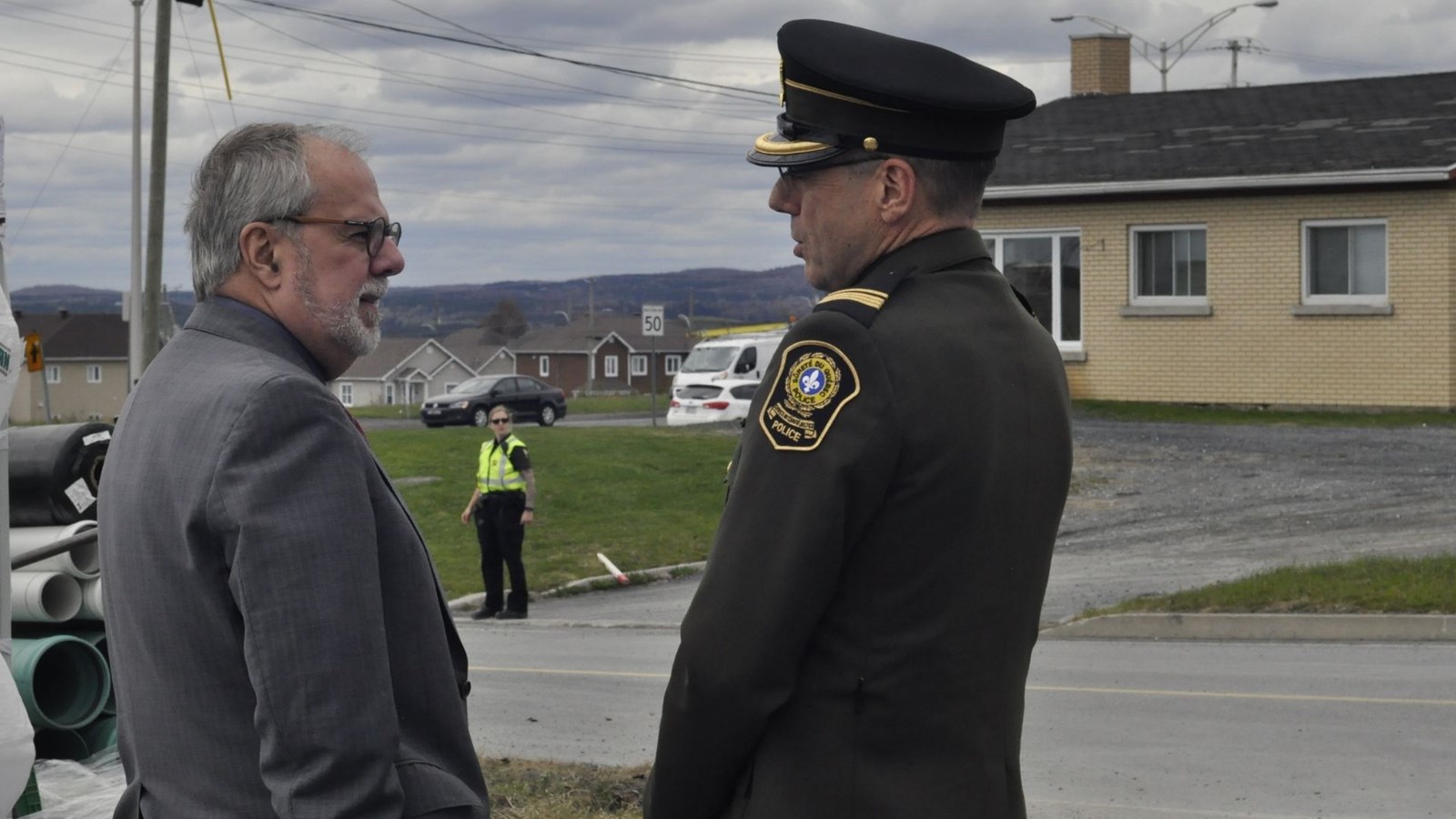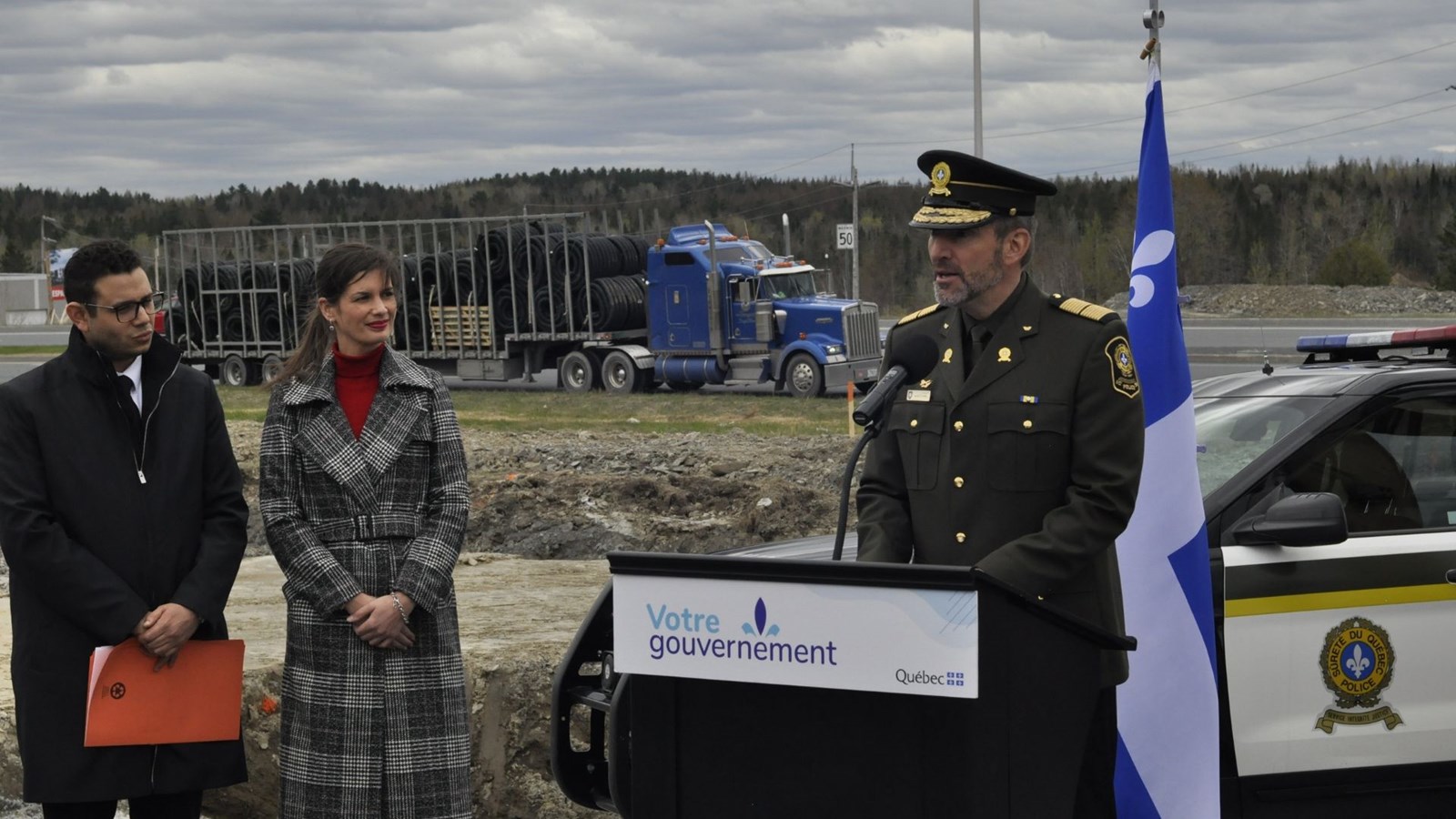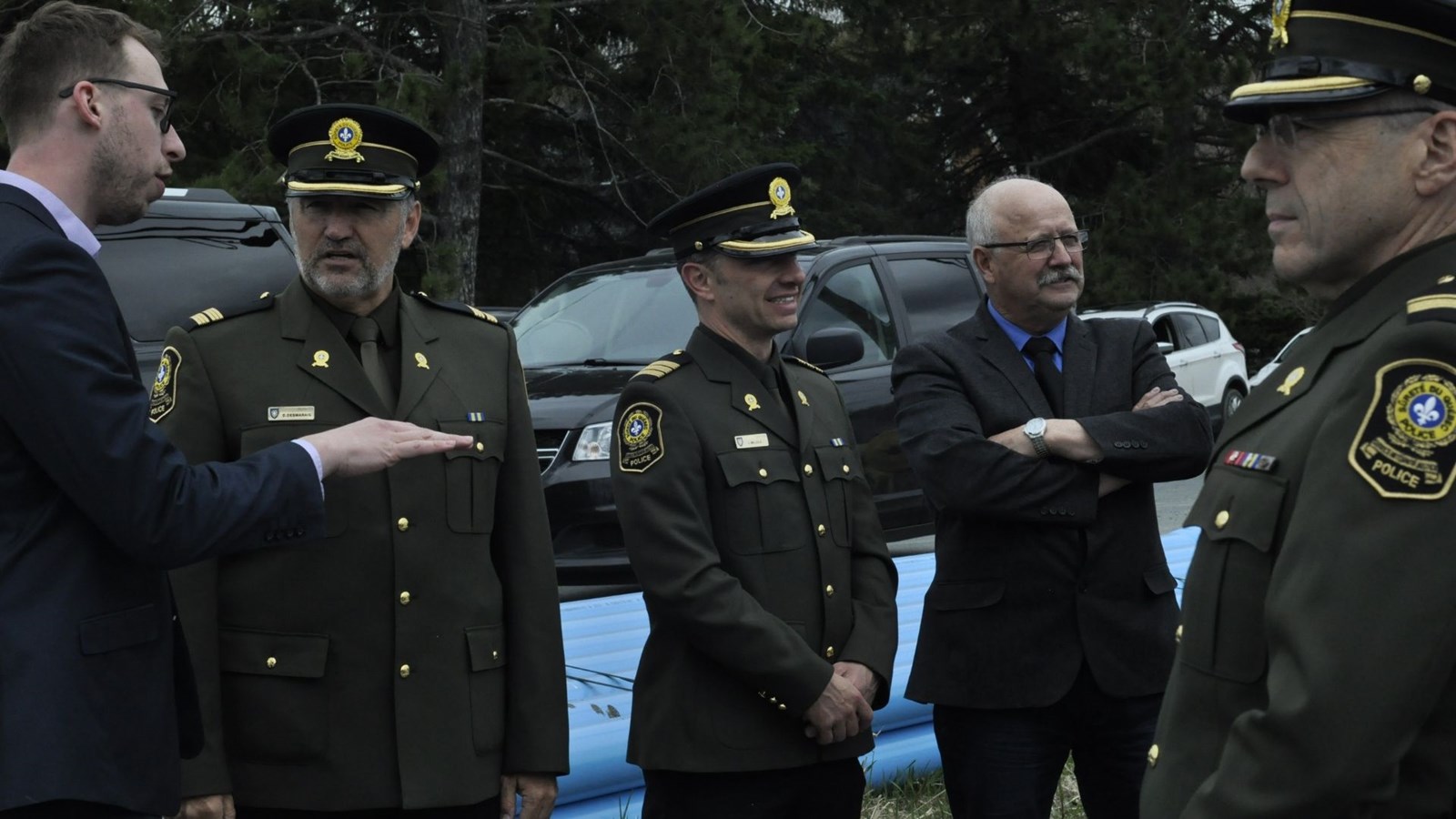 Le député de Beauce-Sud, Samuel Poulin, le préfet de la MRC Beauce-Sartigan, Normand Roy et plusieurs représentants de la Sûreté du Québec étaient présents.
