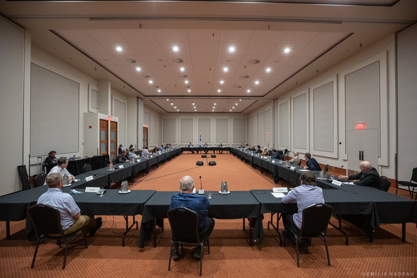 Lors de ce tête-à-tête, il était accompagné de la ministre de la Santé et des Services sociaux, Danielle McCann, et de la ministre déléguée au Développement économique régional et ministre responsable de la région de la Chaudière-Appalaches, Marie-Eve Proulx.