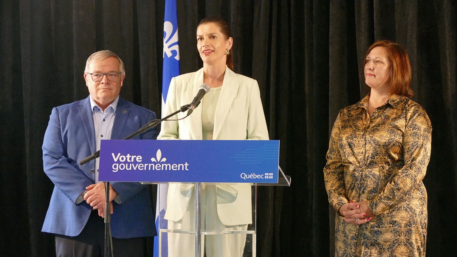 La vice-première ministre et ministre des Transports et de la Mobilité durable, Geneviève Guilbault, la députée de Lotbinière-Frontenac, Isabelle Lecours, et le député de Beauce-Nord, Luc Provençal, ont annoncé la réhabilitation du chemin de fer entre Vallée-Jonction et Thetford Mines, ce mercredi 28 juin.