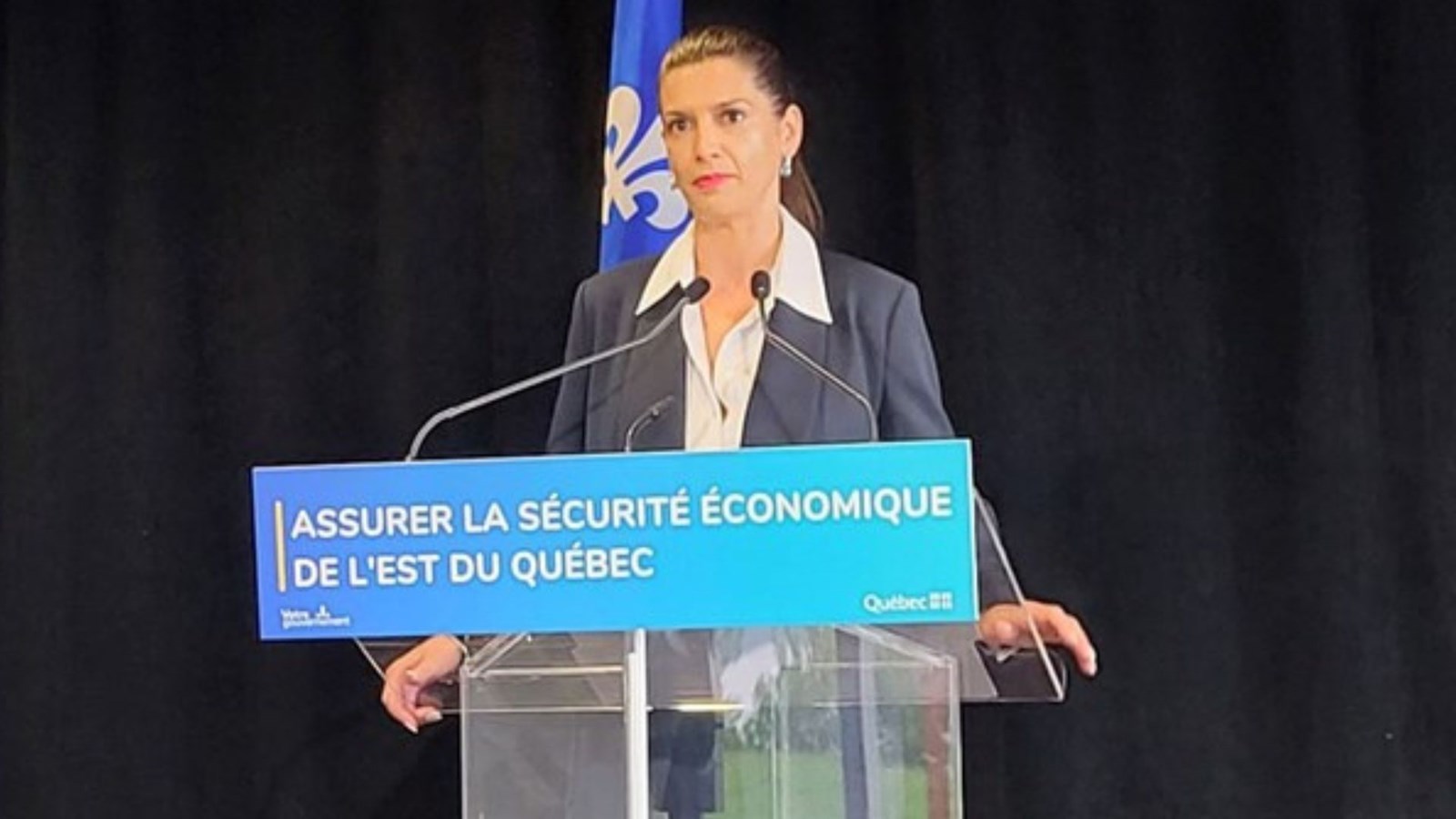 La ministre des Transports et de la Mobilité durable, Geneviève Guilbault, a tenu une conférence de presse pour annoncer l'emplacement du corridor du 3e lien entre Québec et Lévis.