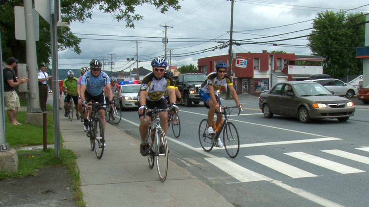 Lundi matin, près d'une dizaine de policiers et civils de la Sûreté du Québec ont enfourché leur vélo à Percé en direction de Lac-Mégantic. Aujourd’hui, ce groupe s’est arrêté au poste de police de Saint-Georges Ouest.