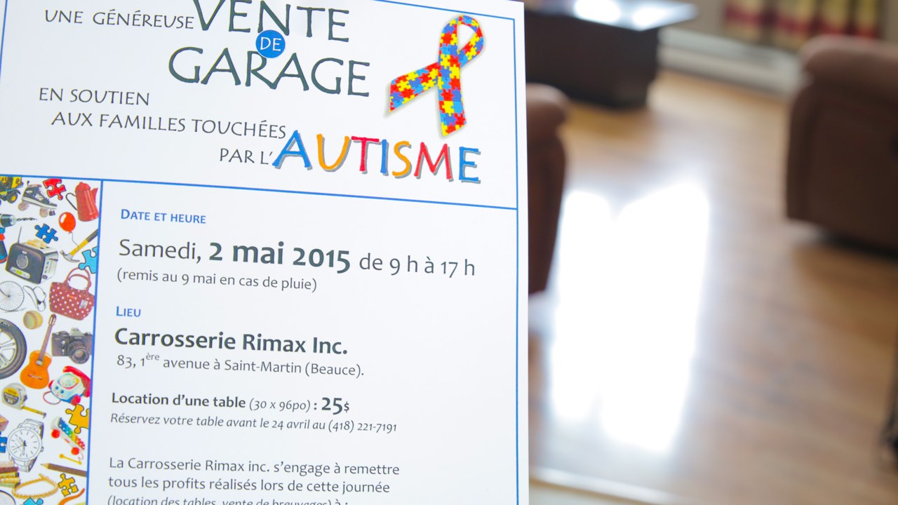 Le 2 mai prochain, de 9 h à 17 h, les propriétaires de la carrosserie Rimax de Saint-Martin effectueront sur place une vente de garage en soutien aux familles touchées par l’autisme. Les profits de l’activité iront directement à l’Association pour l’Intégration sociale (AIS) Beauce-Sartigan.