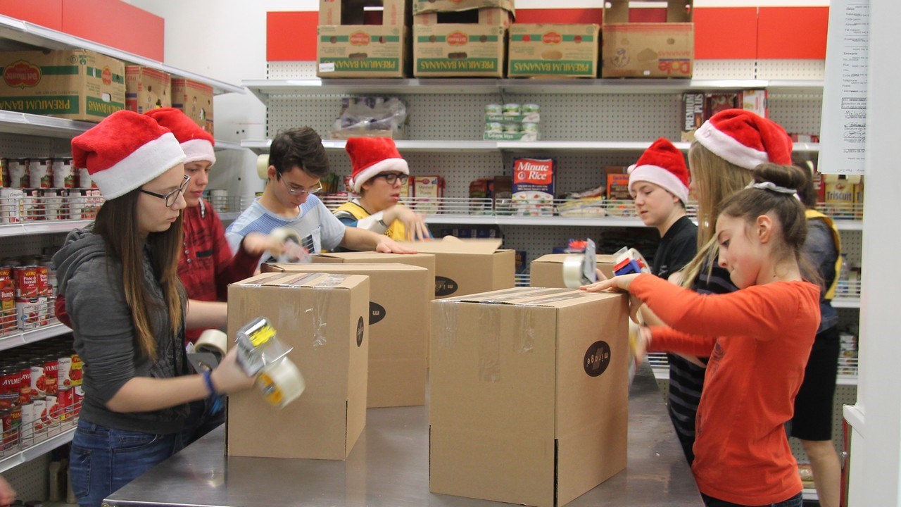 La majorité des bénévoles étaient des jeunes. En avant-midi, des étudiants de la Polyvalente Saint-Georges, de la Polyvalente Saint-François et de l’École secondaire des Deux-Rives s’affairaient à remplir les boites de diverses denrées.