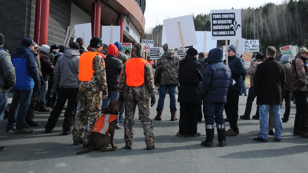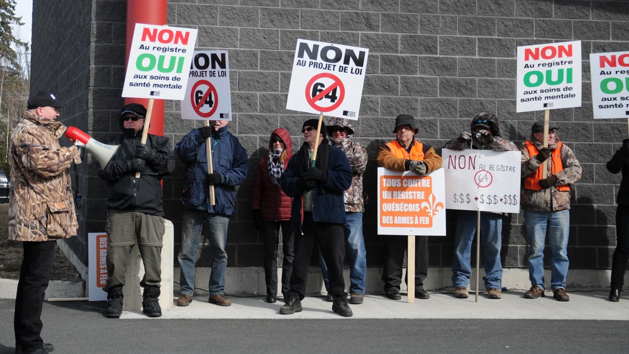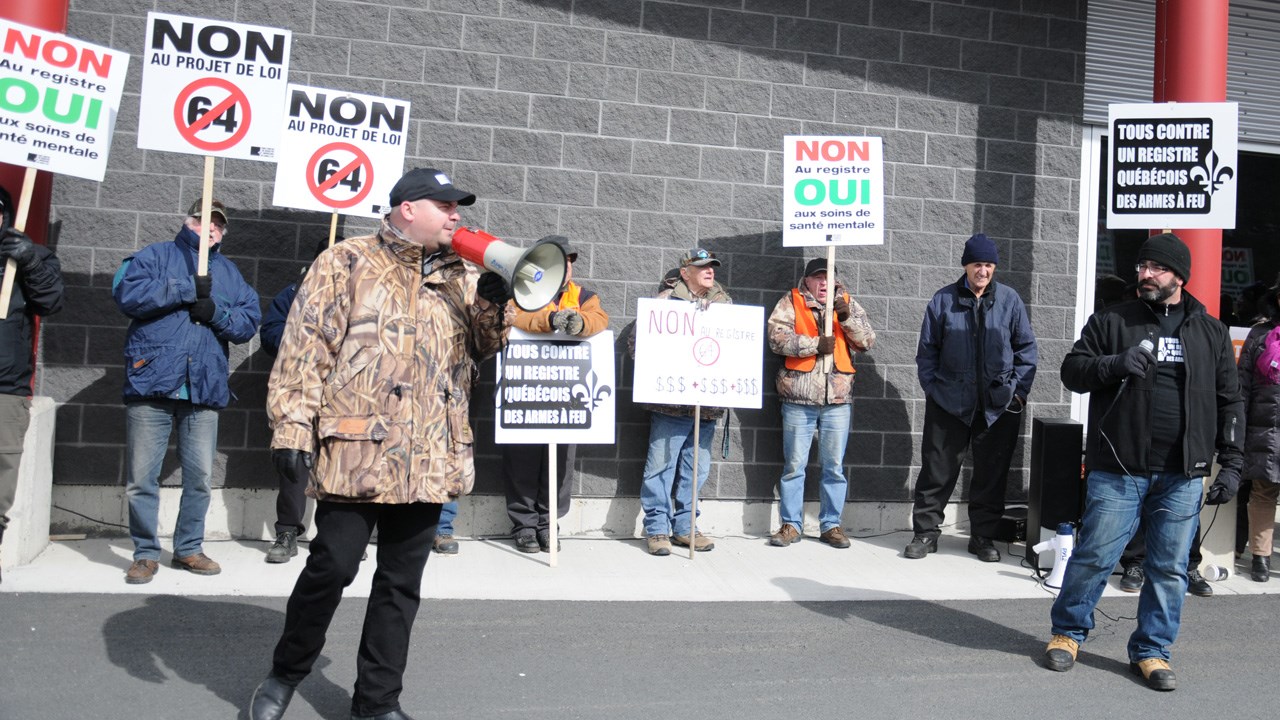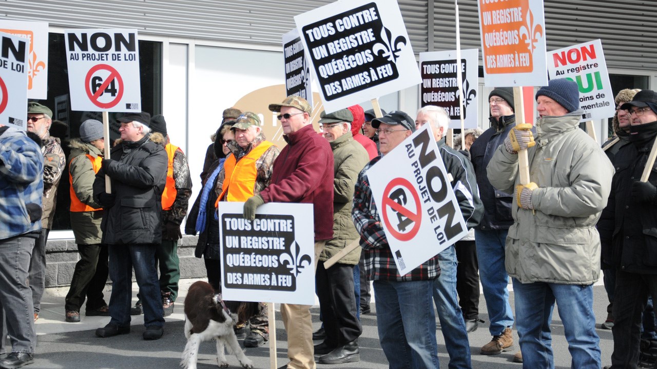 Le mouvement Tous contre un registre québécois des armes à feu a invité la population à se joindre à lui à compter de 9 h pour s’opposer au projet de loi 64.