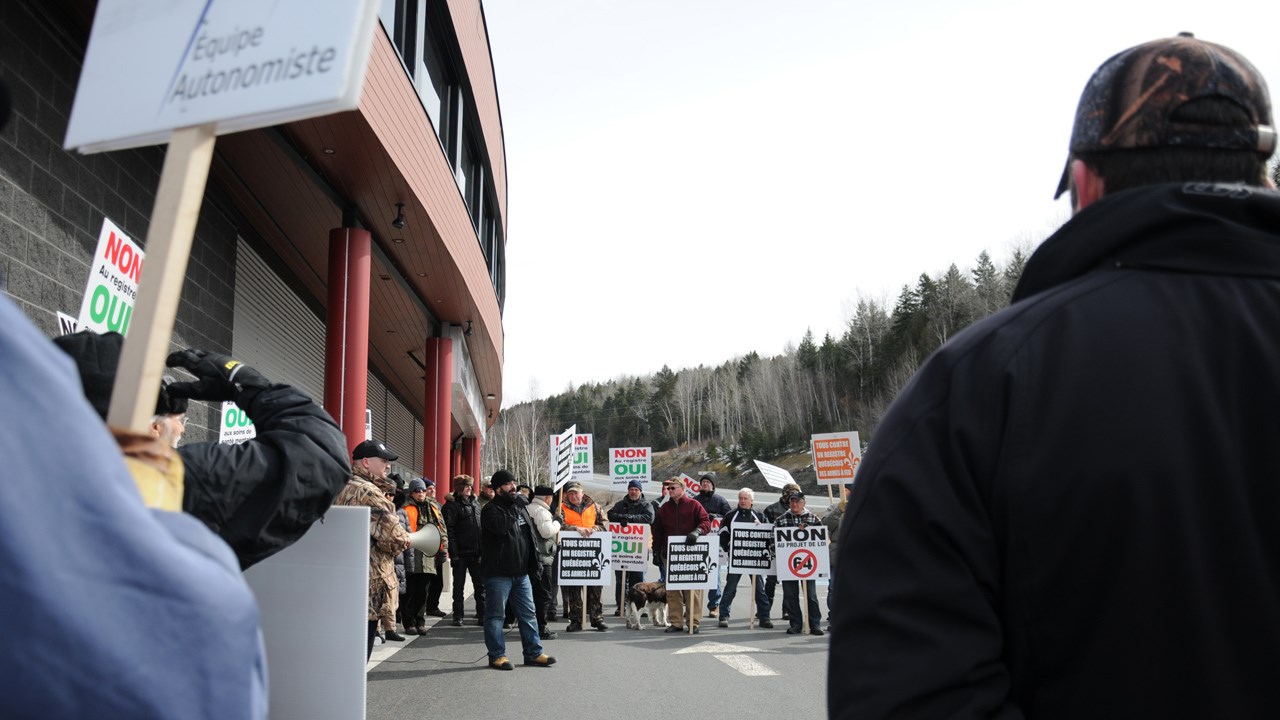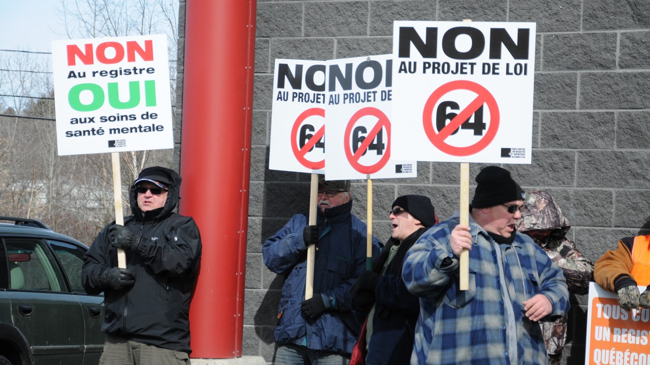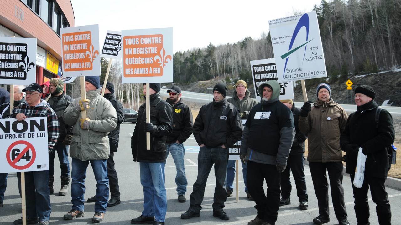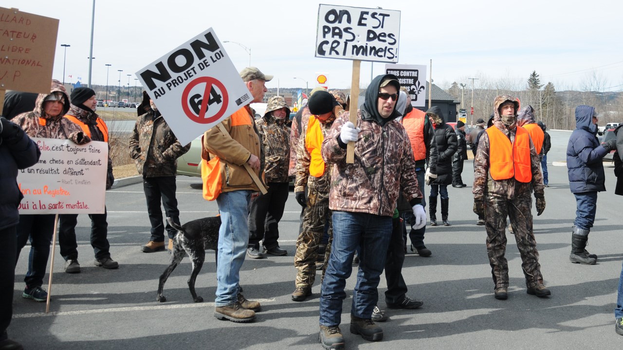 Le mouvement Tous contre un registre québécois des armes à feu a invité la population à se joindre à lui à compter de 9 h pour s’opposer au projet de loi 64.