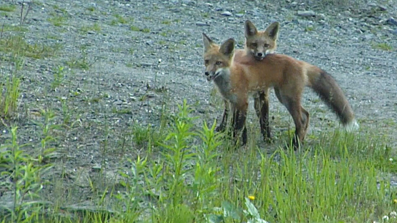 VIDÉO | Jeunes renards s’amusant près d’un boisé à Saint-Prosper