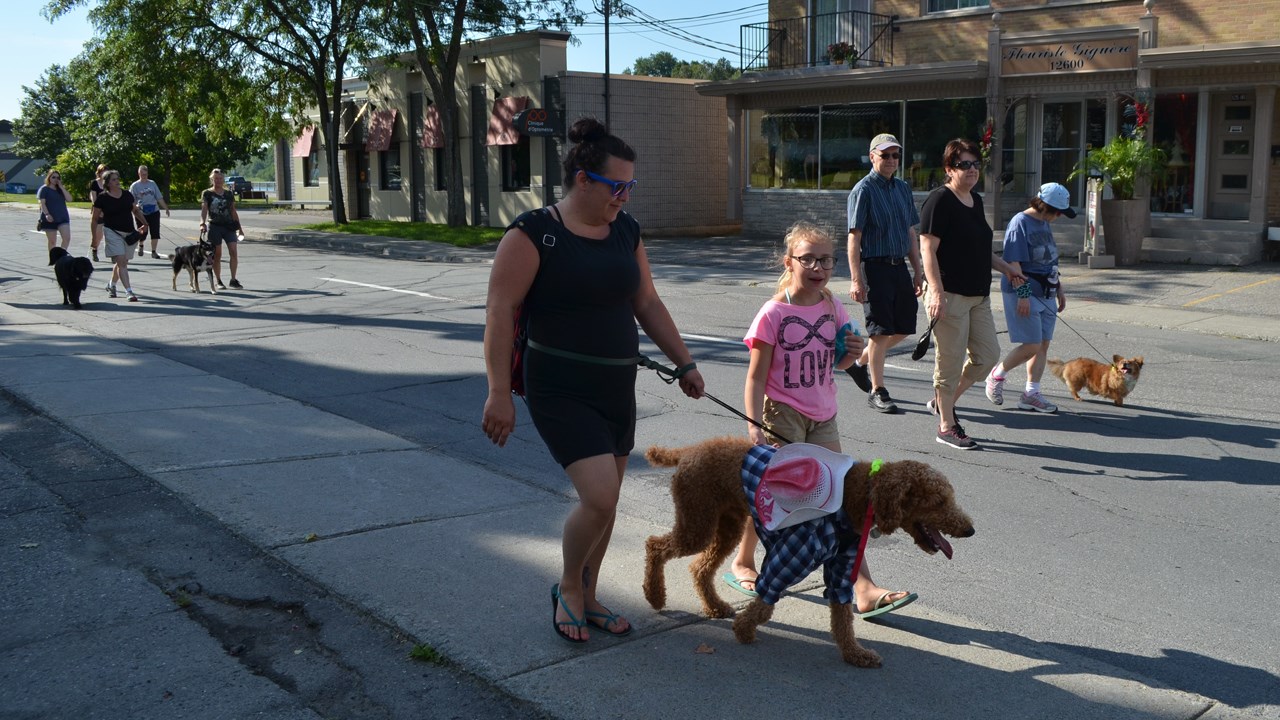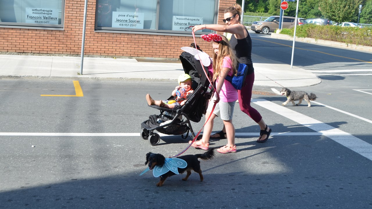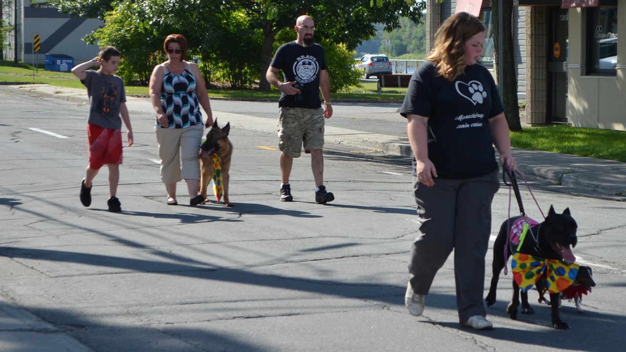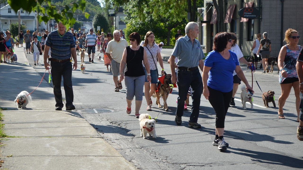 De nombreux autres citoyens ont marché aux côtés des propriétaires de chiens, dont la plupart de ces derniers étaient déguisés pour l'occasion. Le départ a été donné aux alentours de 9 h au stationnement du Grand marché. Les marcheurs se sont rendus jusqu'au magasin Meubles Gérard Poirier avant de retourner vers leur point de départ.