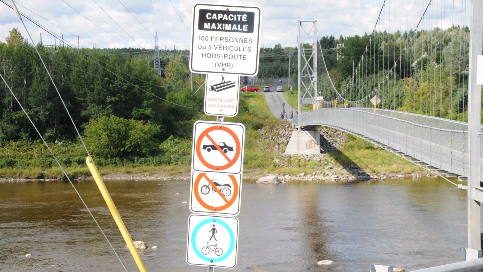 Rappelons en terminant que la structure est capable de supporter jusqu'à cinq VTT ou 100 personnes selon les pancartes afficher à côté de la passerelle.