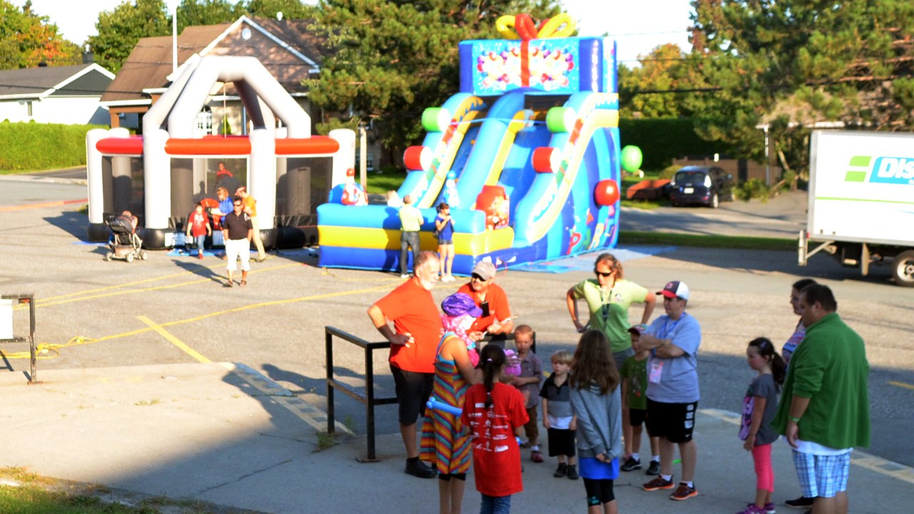 En soirée, une épluchette de blés-d’Inde a eu lieu dans le stationnement des autobus de l’établissement scolaire. Un duo musical s’occupait de l’animation alors que des jeux gonflables ont été aménagés un peu plus loin sur le site. Un kiosque de maquillage et de sculptures en ballon était aussi sur place. La journée de samedi s’est ensuite conclue avec une danse.