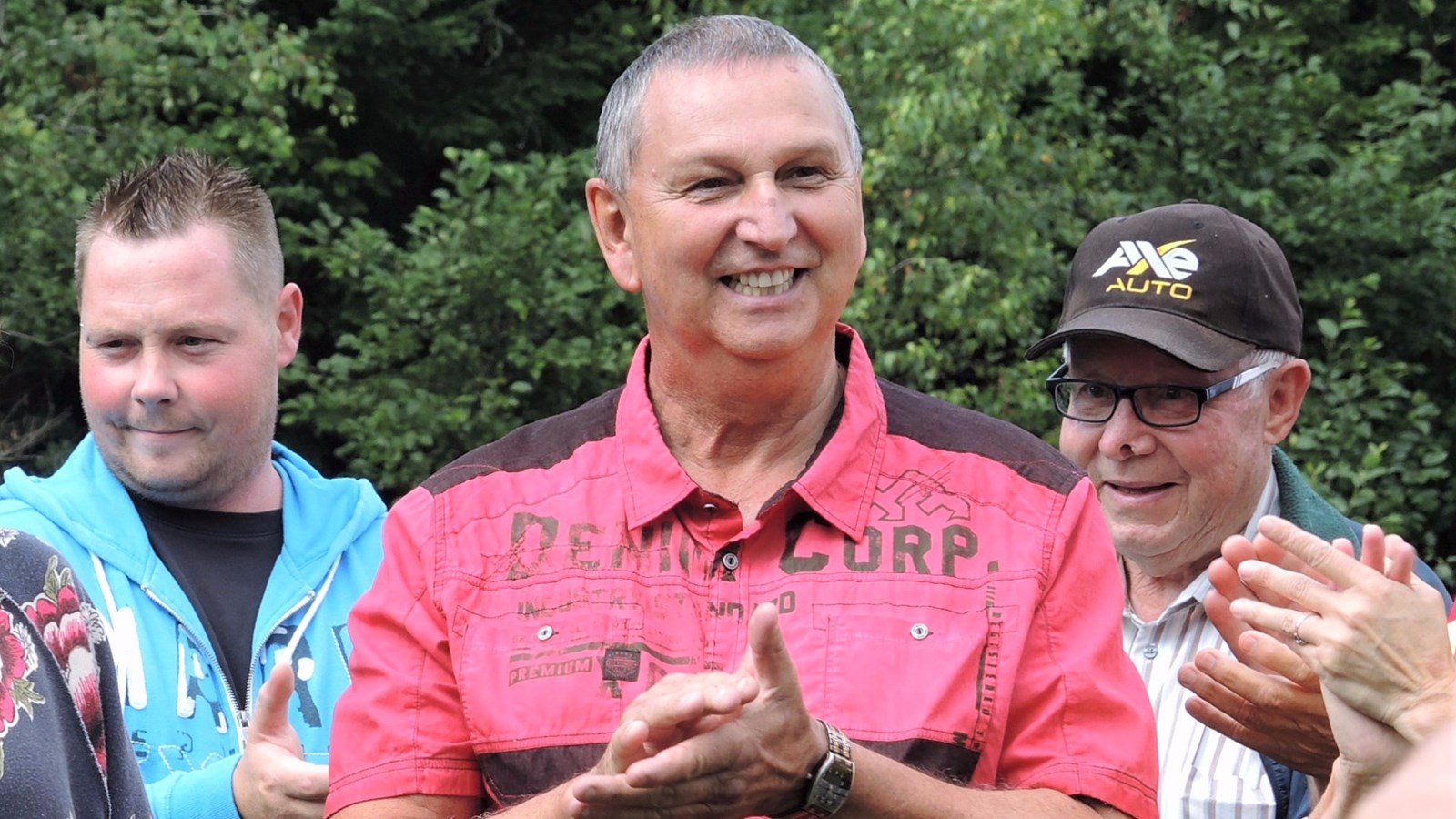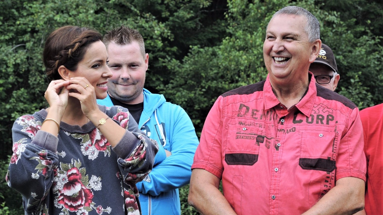 Cyrille Lavoie, résident de Beauceville, entouré de sa famille et de ses amis lors du tournage de La Roue de fortune chez vous! le samedi 12 août 2017.