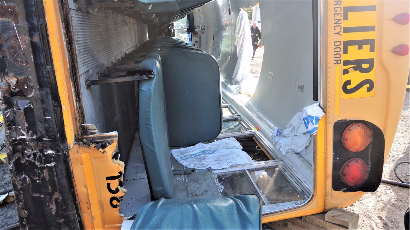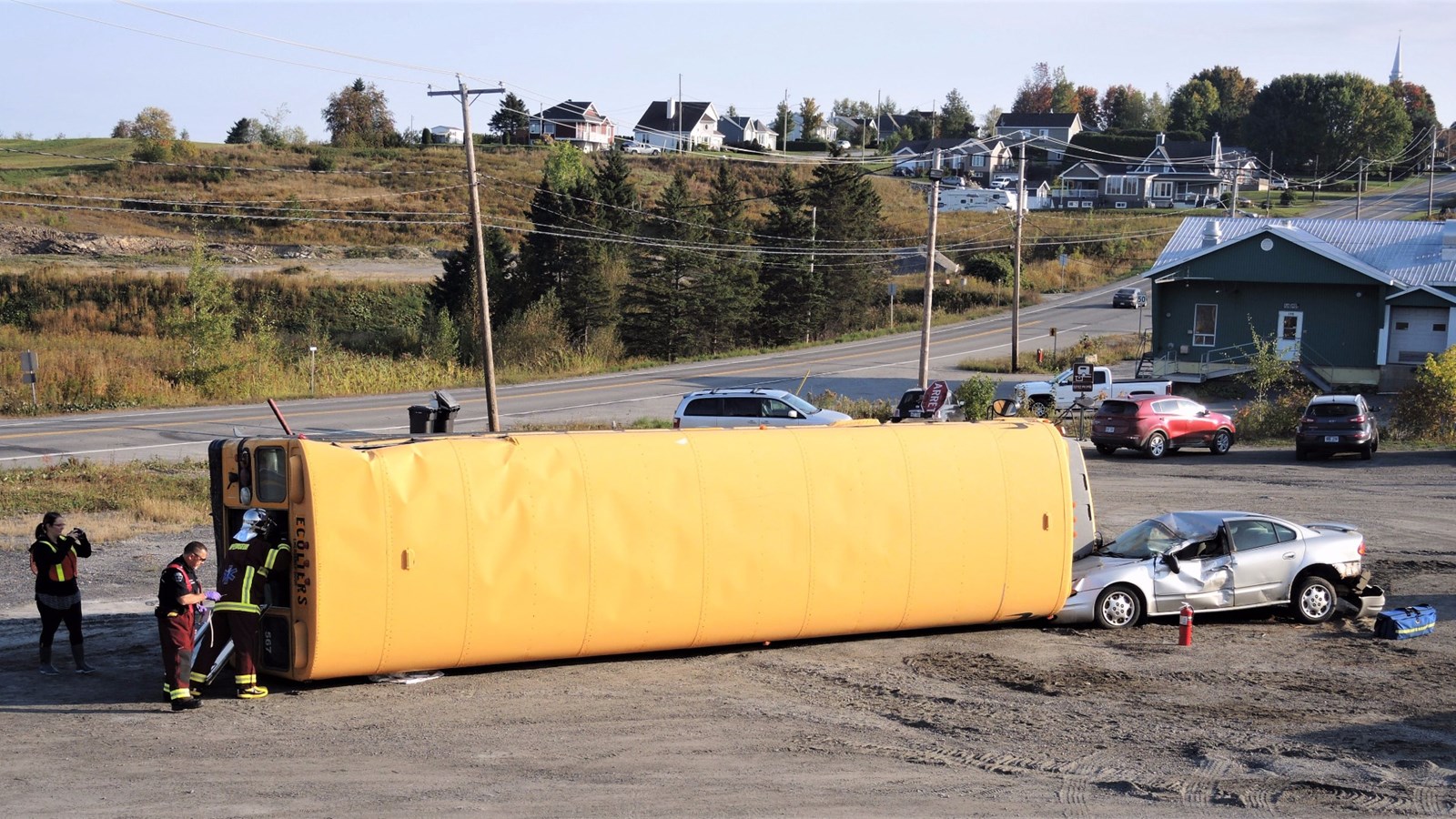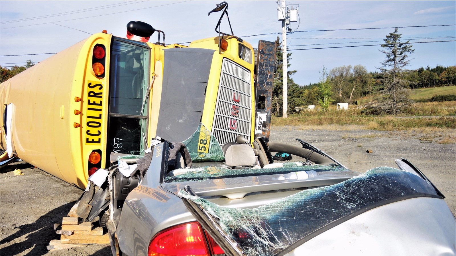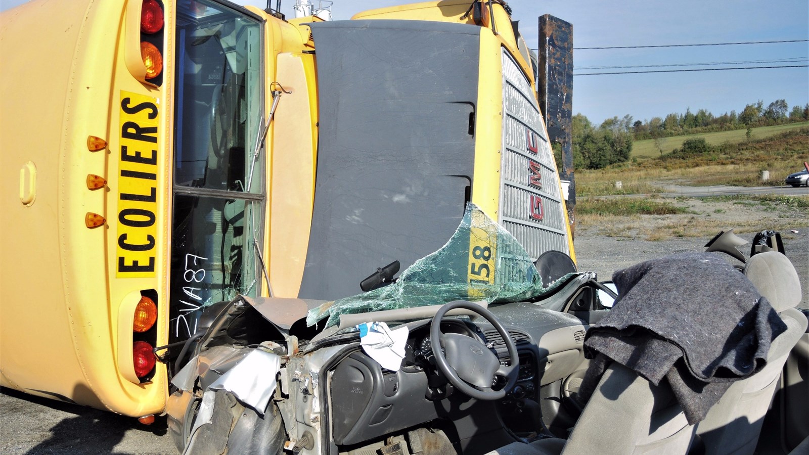Un accident impliquant un autobus scolaire et un véhicule automobile a été simulé.