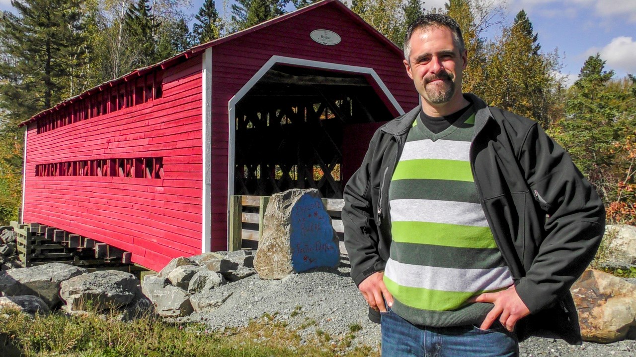 Normand DeLessard présente l'histoire du pont couvert Bolduc à Sainte-Clotilde