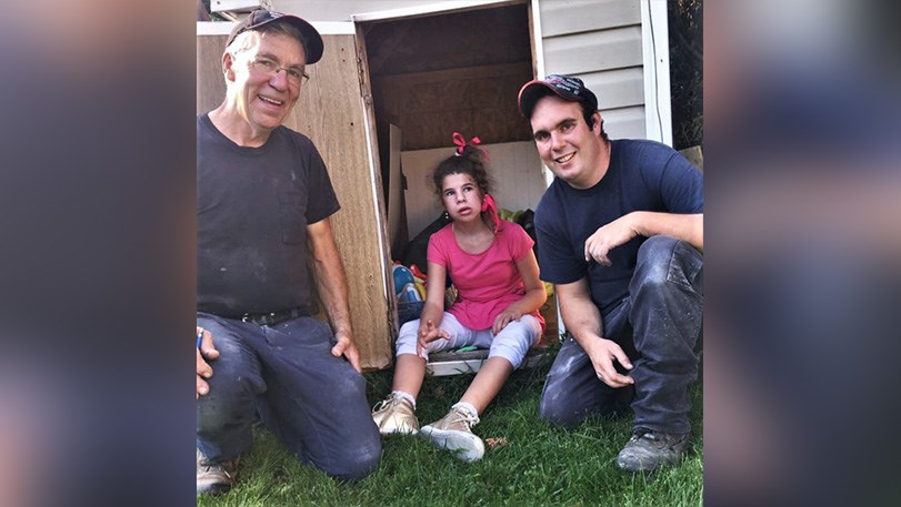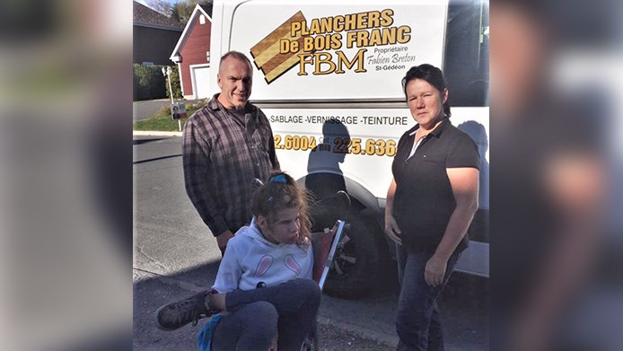 Emmanuel Poulin, entrepreneur général en rénovations, et son fils, en compagnie de la jeune Katia Labranche.