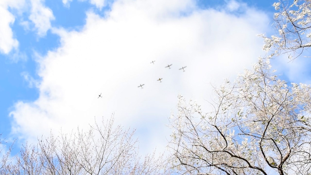 Un salut aérien de circonstance a été effectué aussi par le club aéronautique de Beauce en adoptant la formation du disparu (le « Missing Man », en anglais), exécuté à la mémoire des militaires tombés au combat. Le major Michel Pomerleau, le lieutenant-colonel Robert Bergeron ainsi que les pilotes Simon Drouin, Bernard Poulin, Tom Redmond et Pierre Vermette étaient aux commandes des appareils.