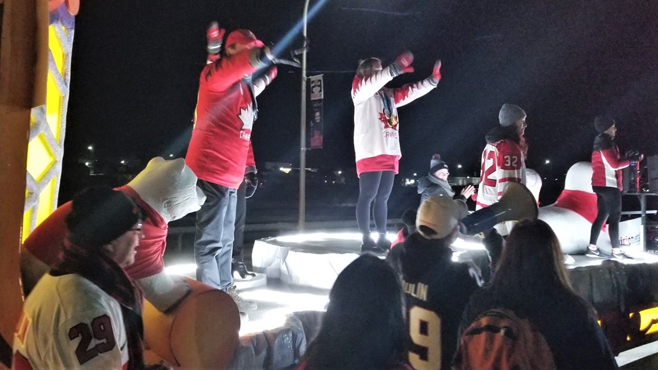 Une parade en l'honneur de Marie-Philip Poulin a attiré des centaines de personnes lors du samedi 31 mars 2018, dans les rues de Beauceville.