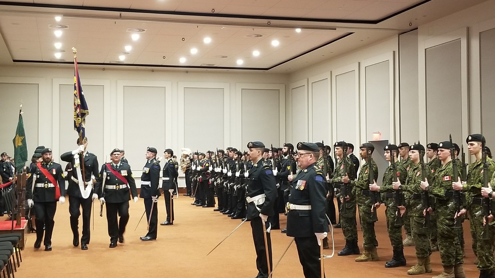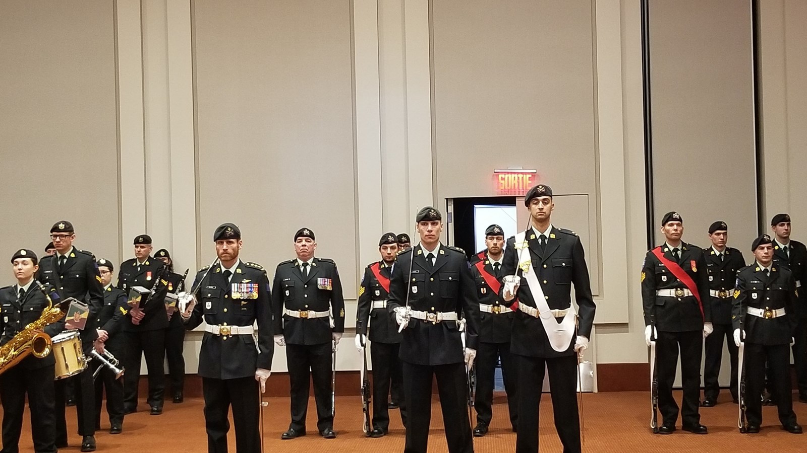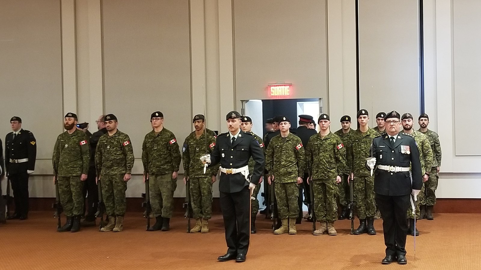 Dans la salle des congrès du Georgesville, le samedi 9 mars, le Régiment de la Chaudière a tenu une parade afin de célébrer l’attribution de trois nouveaux honneurs de batailles. Ils figureront sur leur drapeau régimentaire.