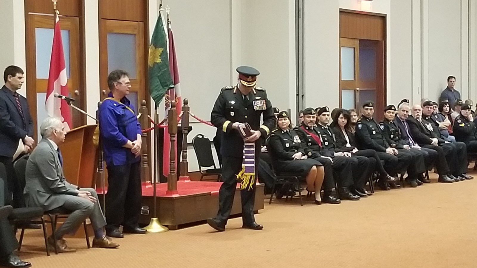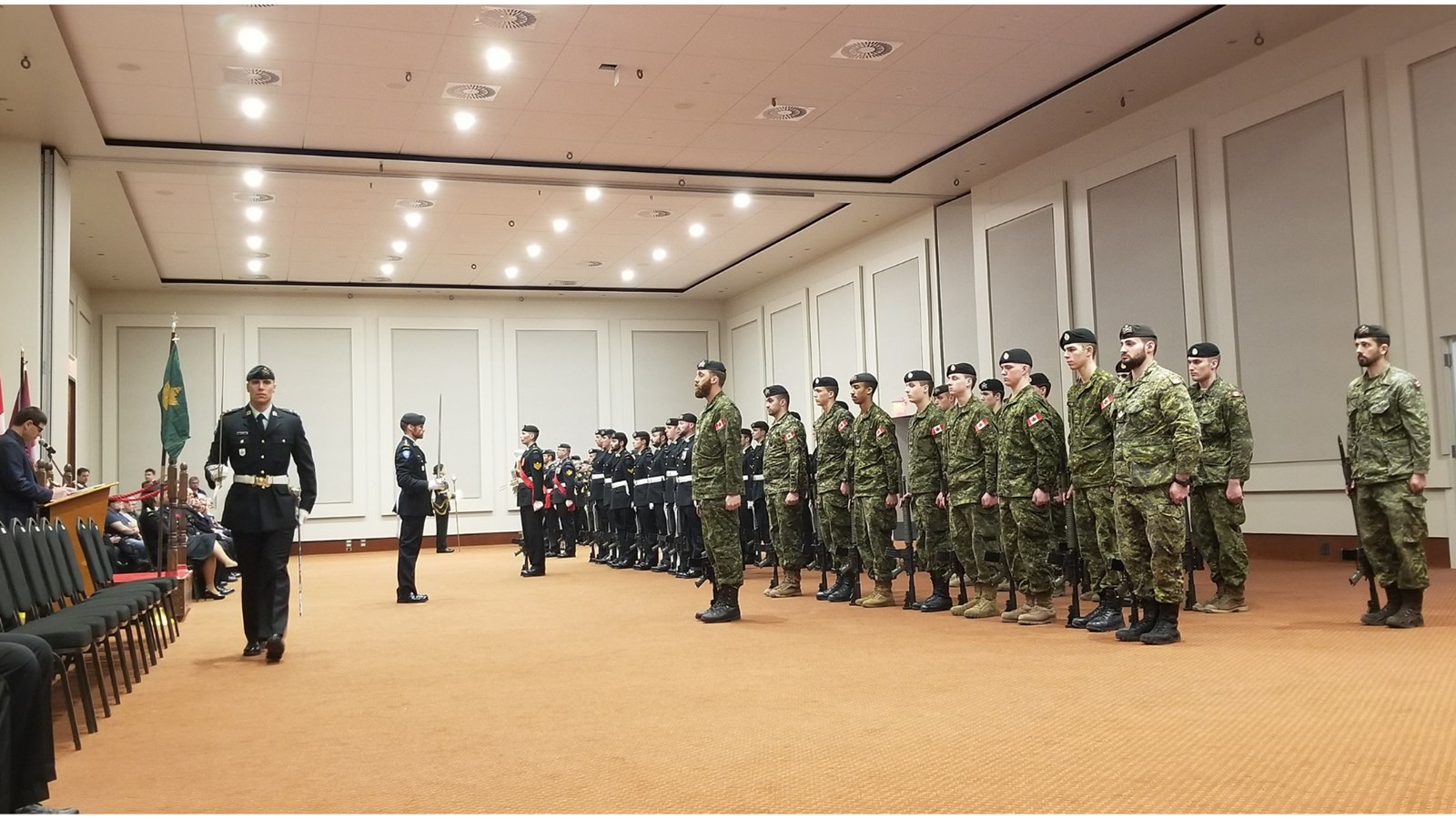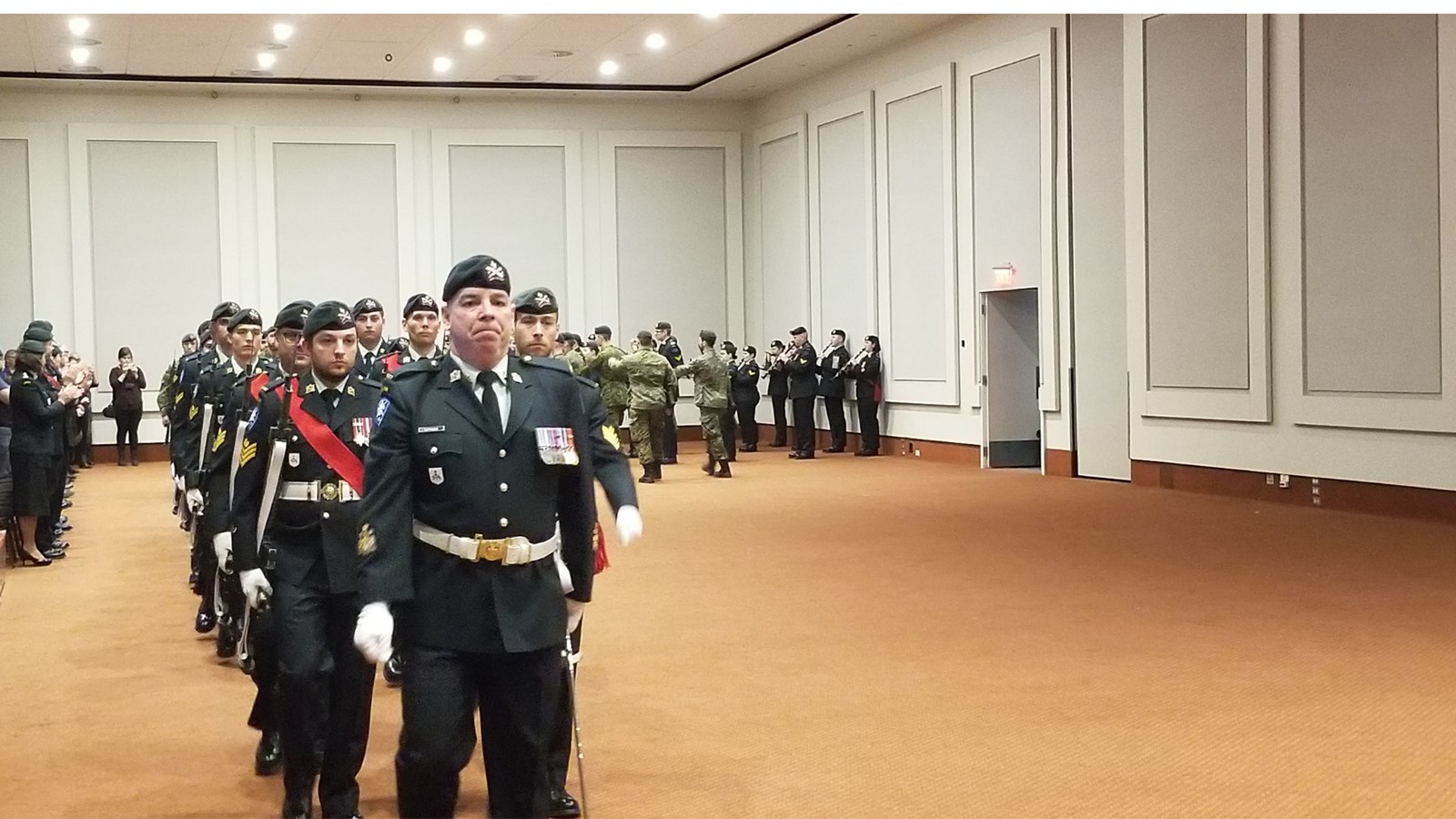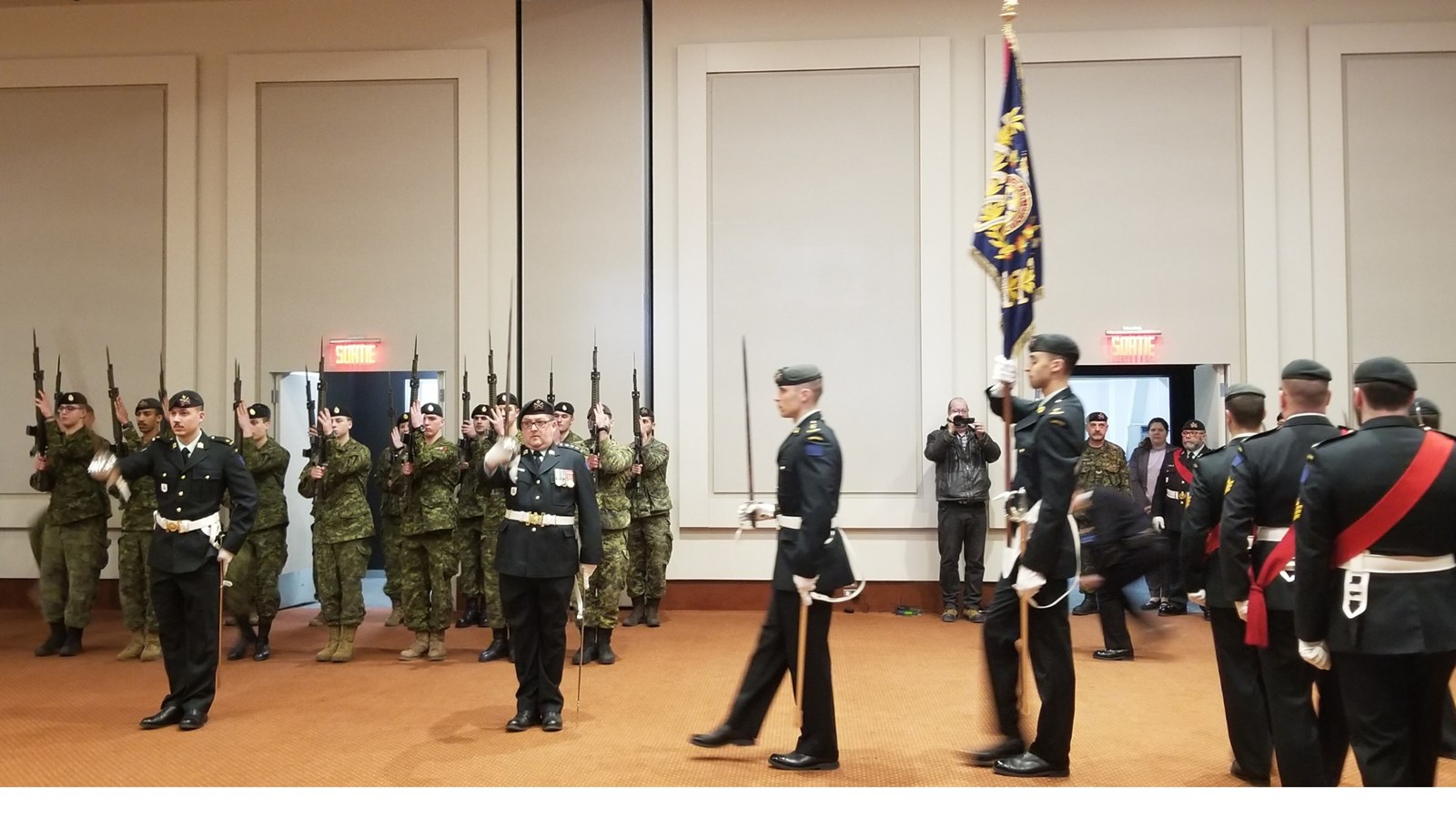 Dans la salle des congrès du Georgesville, le samedi 9 mars, le Régiment de la Chaudière a tenu une parade afin de célébrer l’attribution de trois nouveaux honneurs de batailles. Ils figureront sur leur drapeau régimentaire.