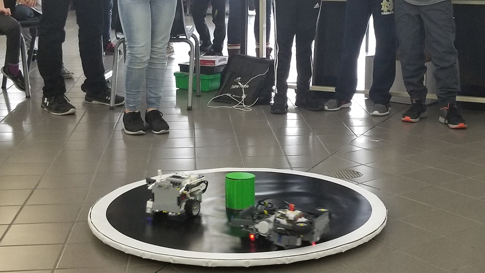 Les élèves de 9 à 12 ans pouvaient participer à l’un des deux défis : 1- Le défi 3e Alarme où le robot-sauveteur devait intervenir afin de secourir des victimes coincées dans des édifices en flamme ou 2- le défi Sumo-Confrontation qui consistait à un duel de robots. Les équipes devaient soit coincer ou faire tomber l’adversaire en dehors « d’une plateforme pétrolière en dérive. »