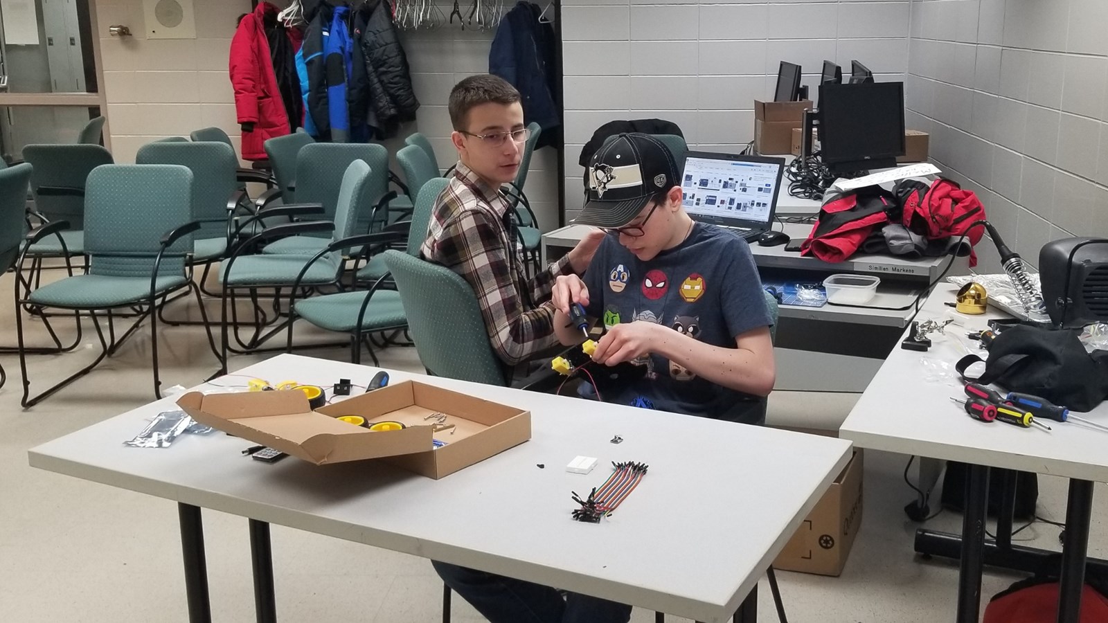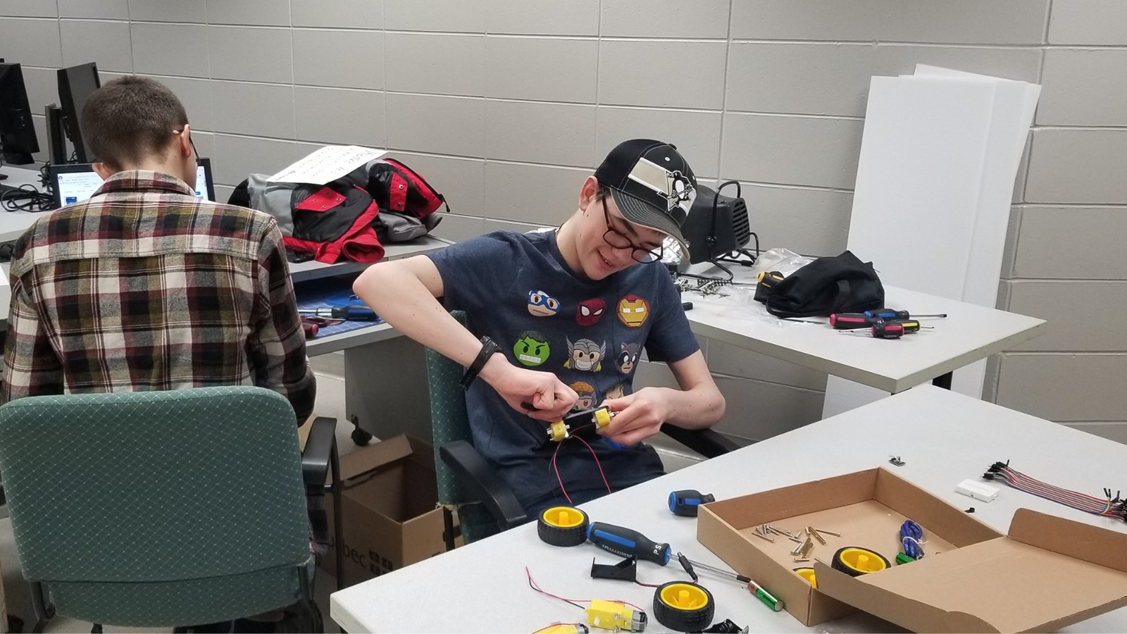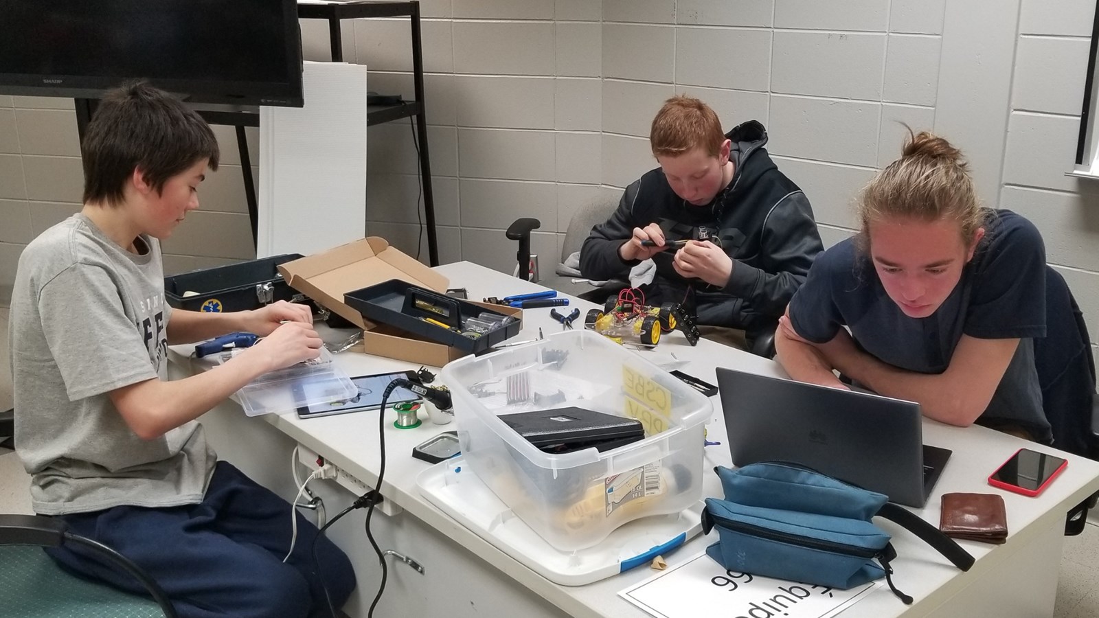 Les trois équipes participantes du secondaire venaient des écoles La Polyvalente de Saint-Georges, La Polyvalente Benoît-Vachon et La Polyvalente Saint-François. Ils devaient relever un Défi-découverte avec un robot de la technologie Arduino. La juge responsable, Chantal Poulin, conseillère pédagogique en sciences du CSBE, leur a donné le matin même les pièces du robot qu’ils doivent monter, puis le programmer pour qu’il circule dans un labyrinthe qu’ils auront également conçu.