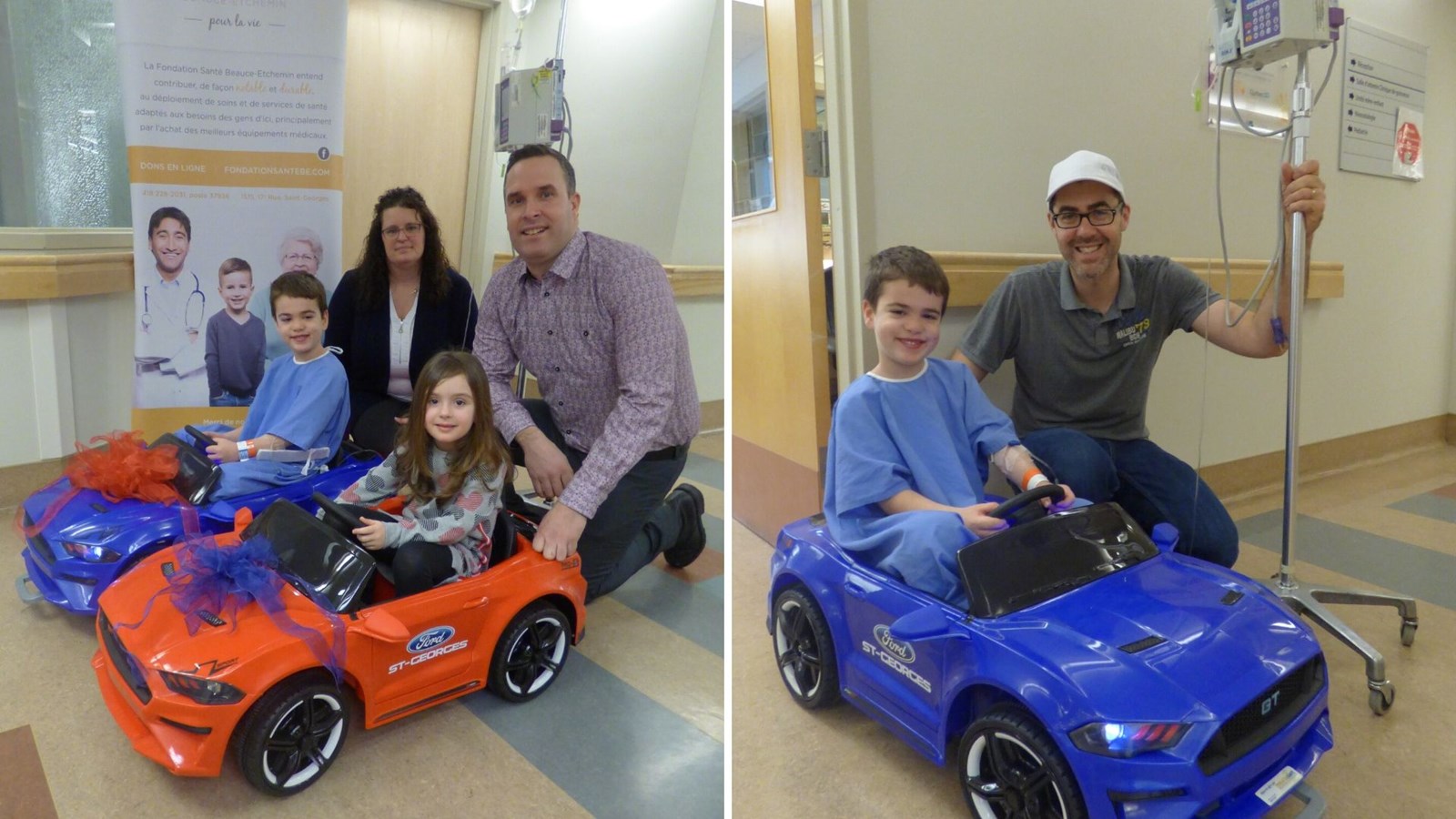 Pour distraire les petits malades hospitalisés en pédiatrie au Centre hospitalier de Saint-Georges, les membres de l’équipe du concessionnaire Saint-Georges Ford ont livré, aujourd’hui, deux voiturettes destinées aux jeunes âgés de 2 à 6 ans.