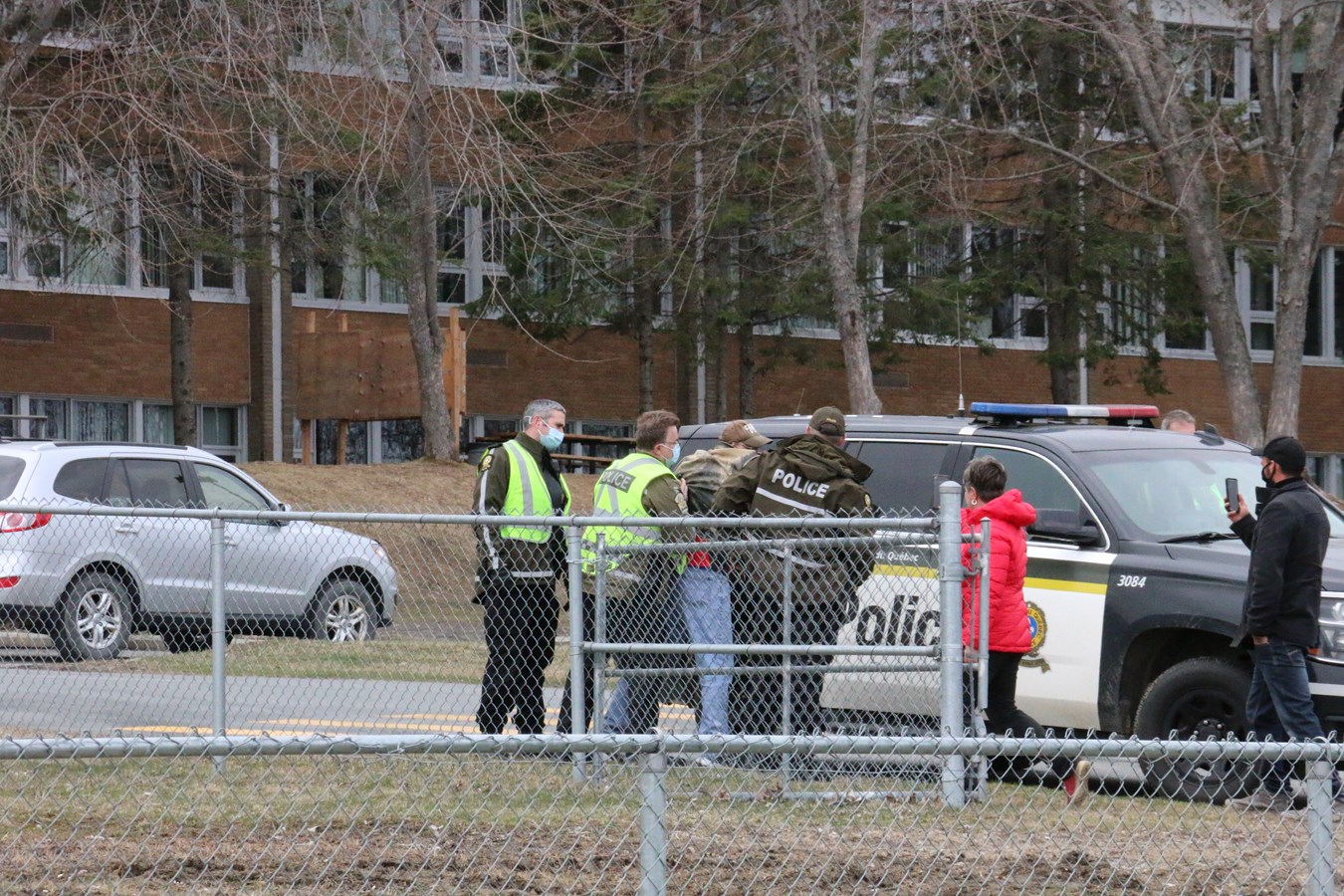 La manif s'est déroulée devant un très important contingent policier de la Sûreté du Québec, alors que l'on comptait au moins une quinzaine de véhicules et quelque 25 agents, certains venus de Montréal et de Québec.