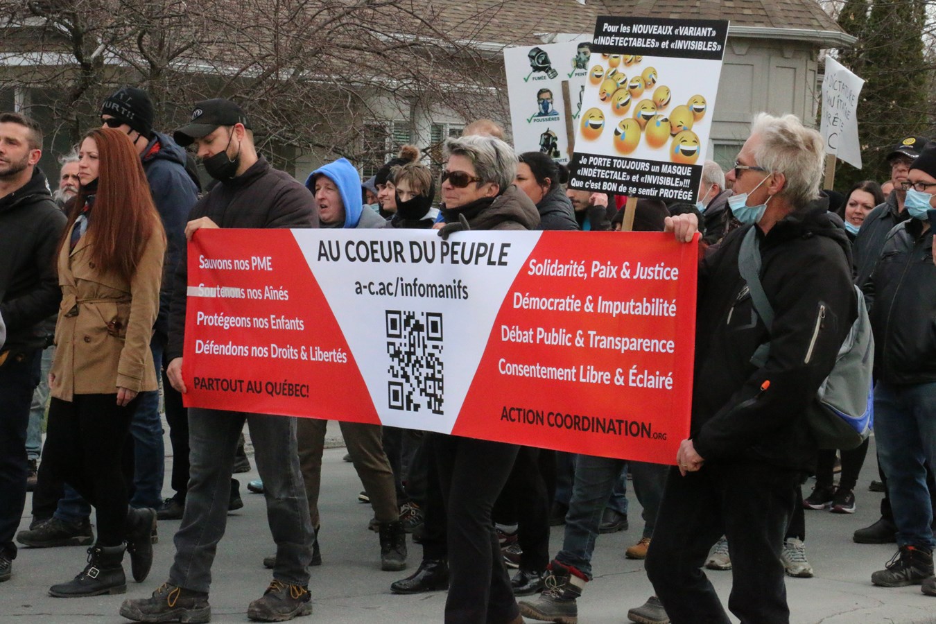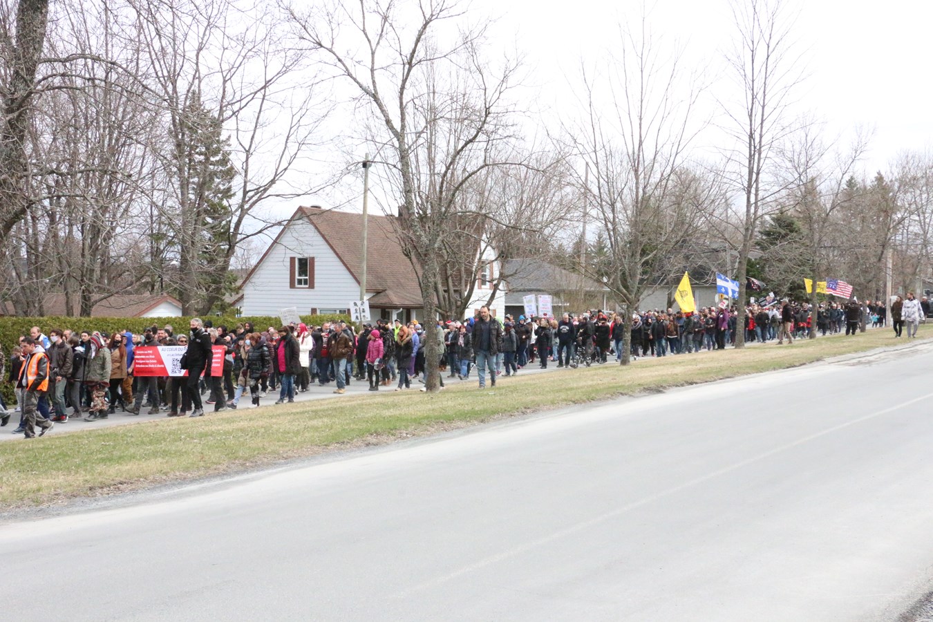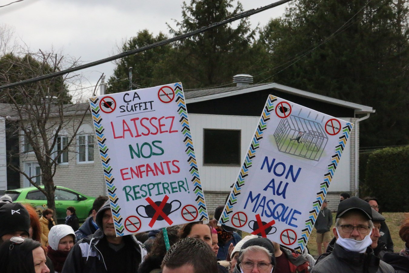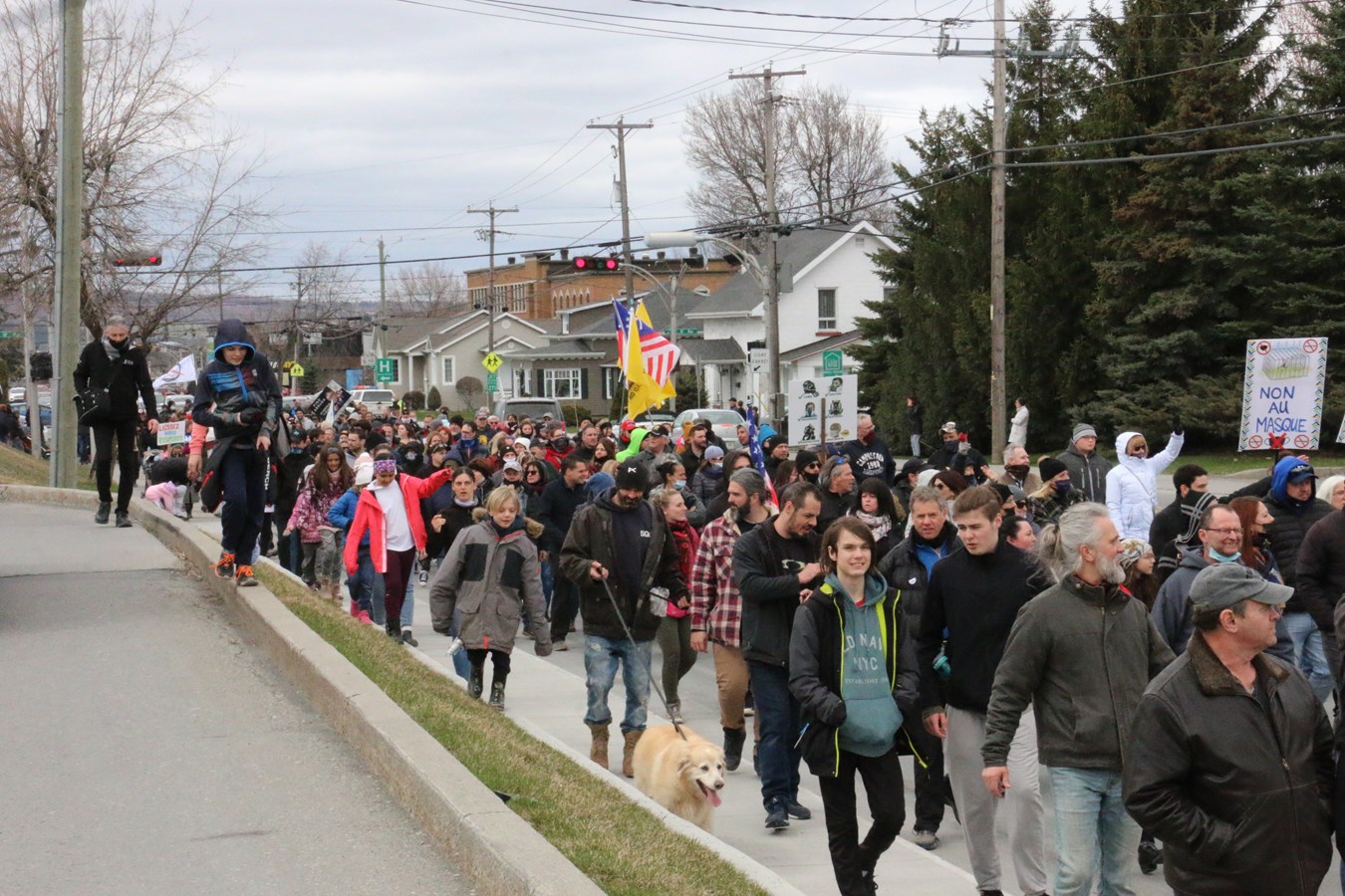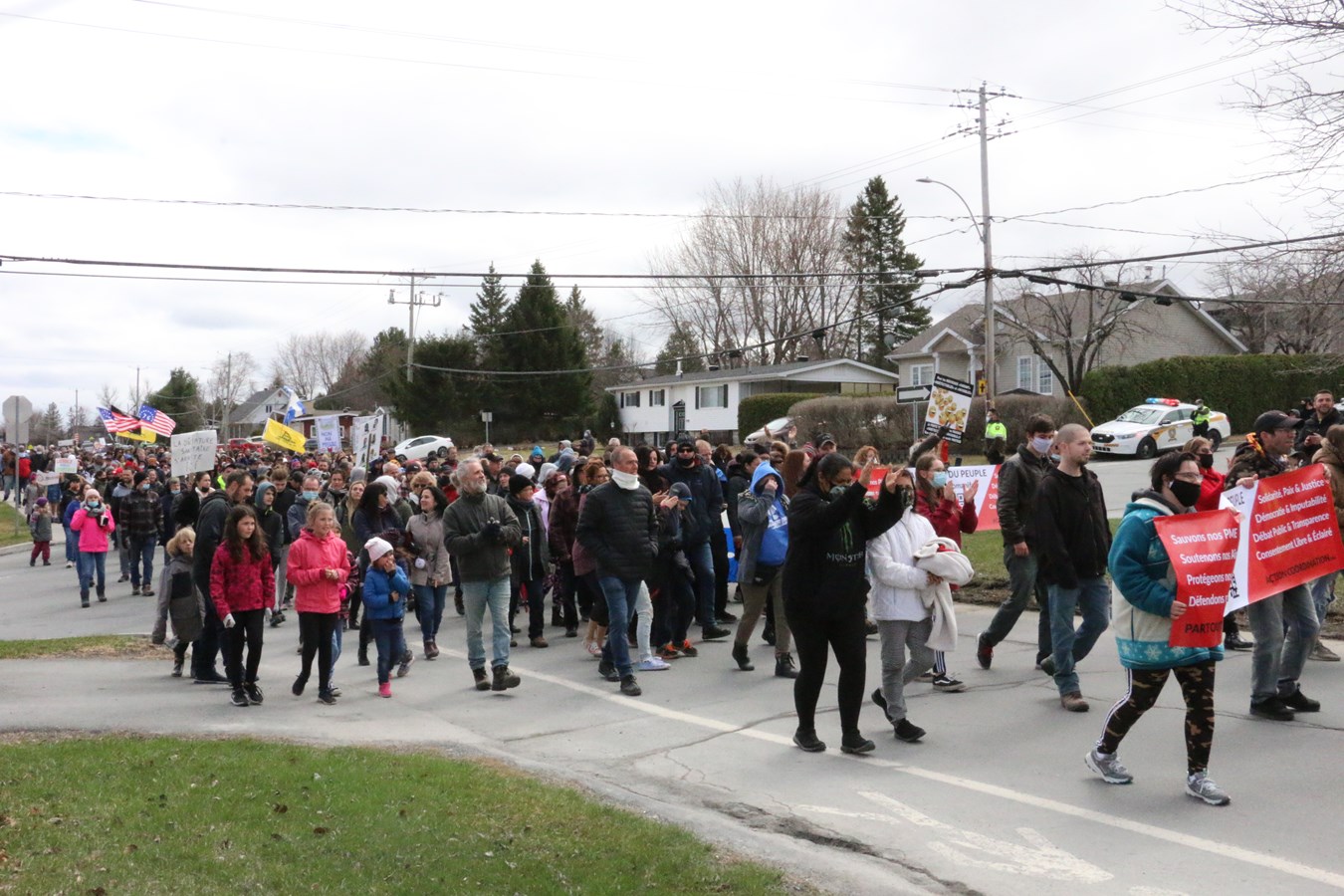 Environ 500 personnes ont participé en début d'après-mdi aujourd'hui à une manifestation contre le port du masque en milieu scolaire et tout ce qui tourne autour des mesures sanitaires gouvernementales pour se protéger de la COVID-19.