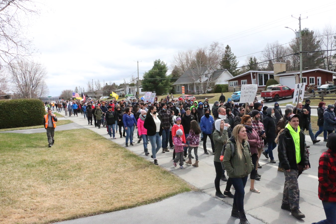 Le groupe s'est rassemblé devant l'École des Deux-Rives à Saint-Georges puis le cortège a déambulé dans le secteur, principalement sur le boulevard Dionne et la 10e avenue.