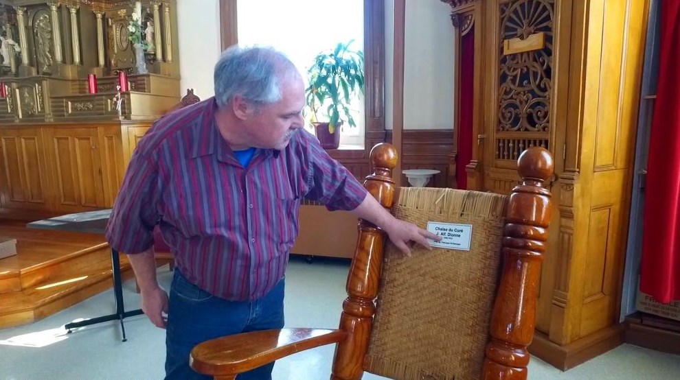 Normand DeLessard présente les souvenirs de la chaise berçante du curé Dionne