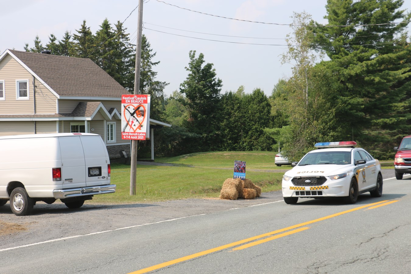 On compte bien sûr depuis hier une forte présence policière à Saint-Benoit, tant dans le rang 6, où se passe le rassemblement, que dans le village même. Le Festival Gaulois doit se poursuivre jusqu'à demain.