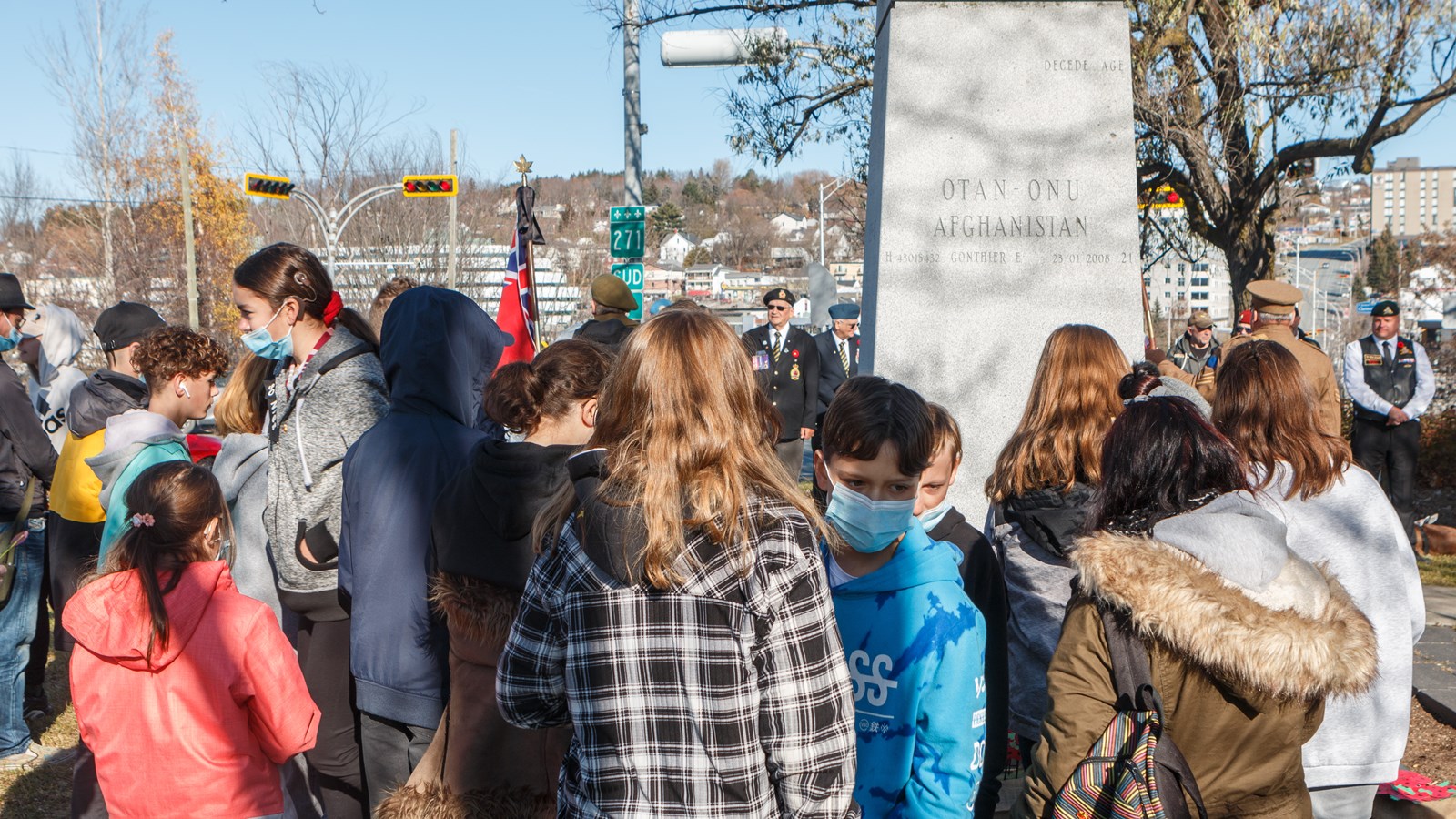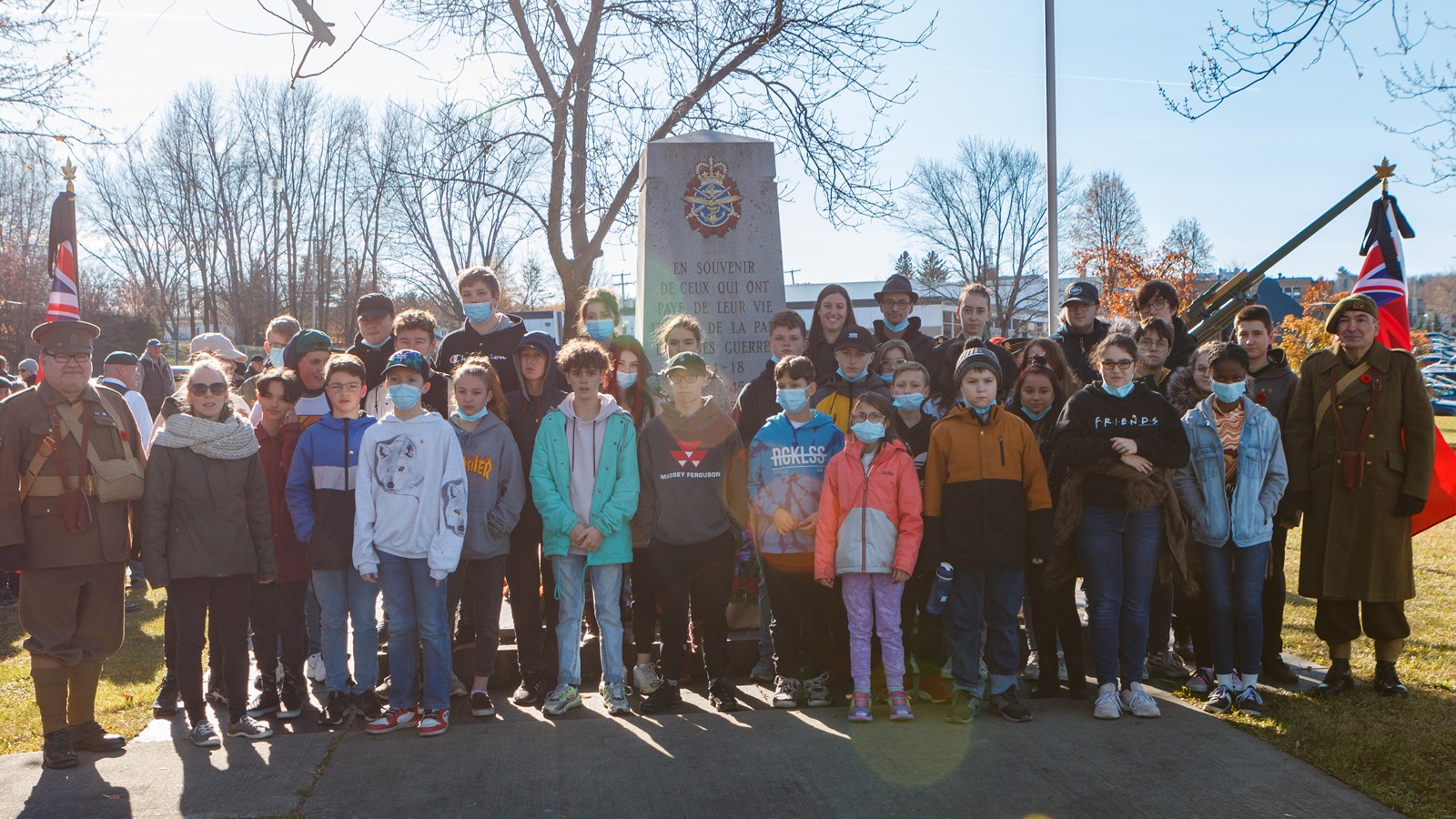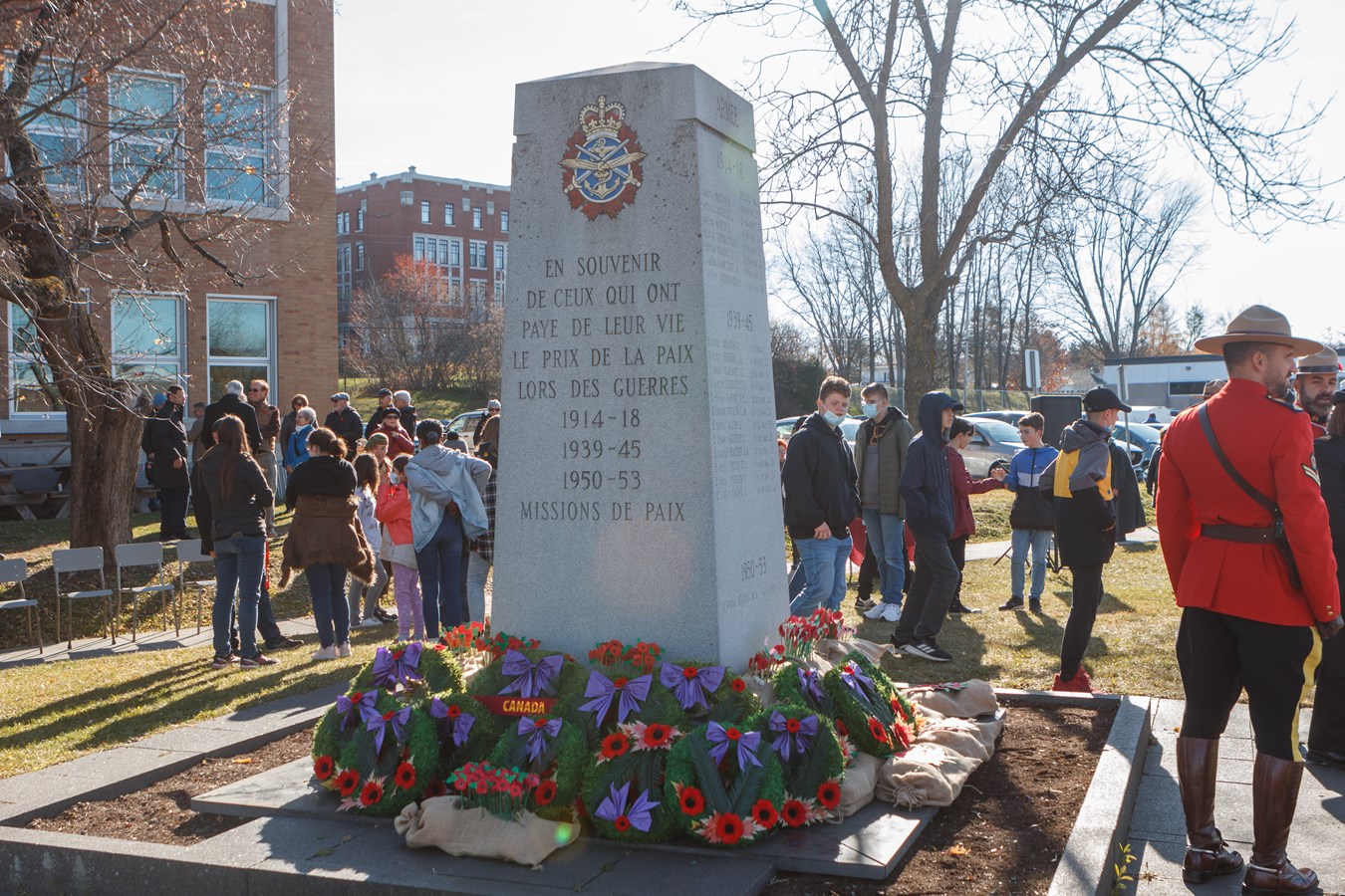 Pour l'occasion, 1 000 élèves du Centre de services scolaires de Beauce-Etchemin ont conçu des coquelicots qui ont été déposés auprès du cénotaphe par 50 élèves de la polyvalente de Saint-Georges.