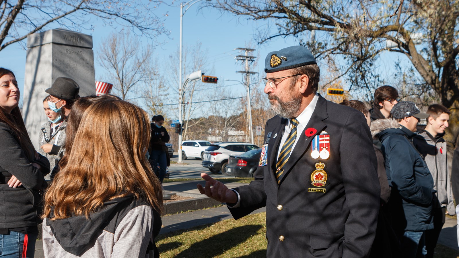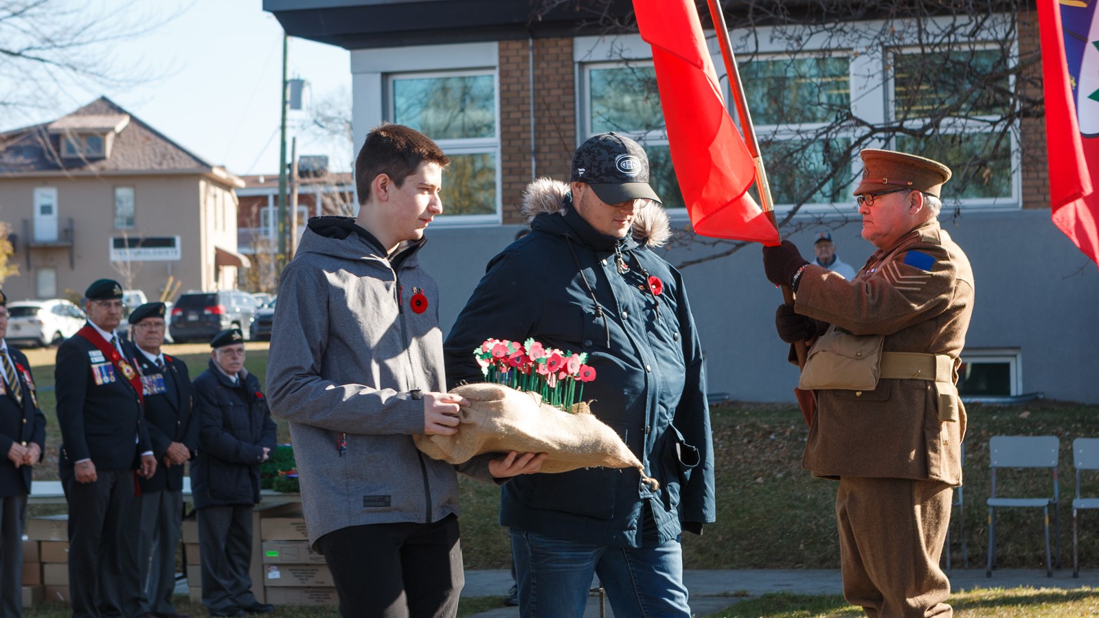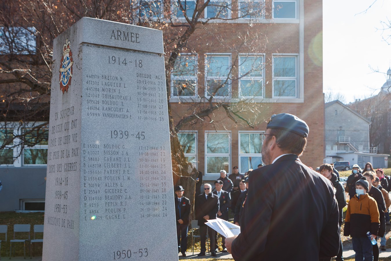 Pour l'occasion, 1 000 élèves du Centre de services scolaires de Beauce-Etchemin ont conçu des coquelicots qui ont été déposés auprès du cénotaphe par 50 élèves de la polyvalente de Saint-Georges.