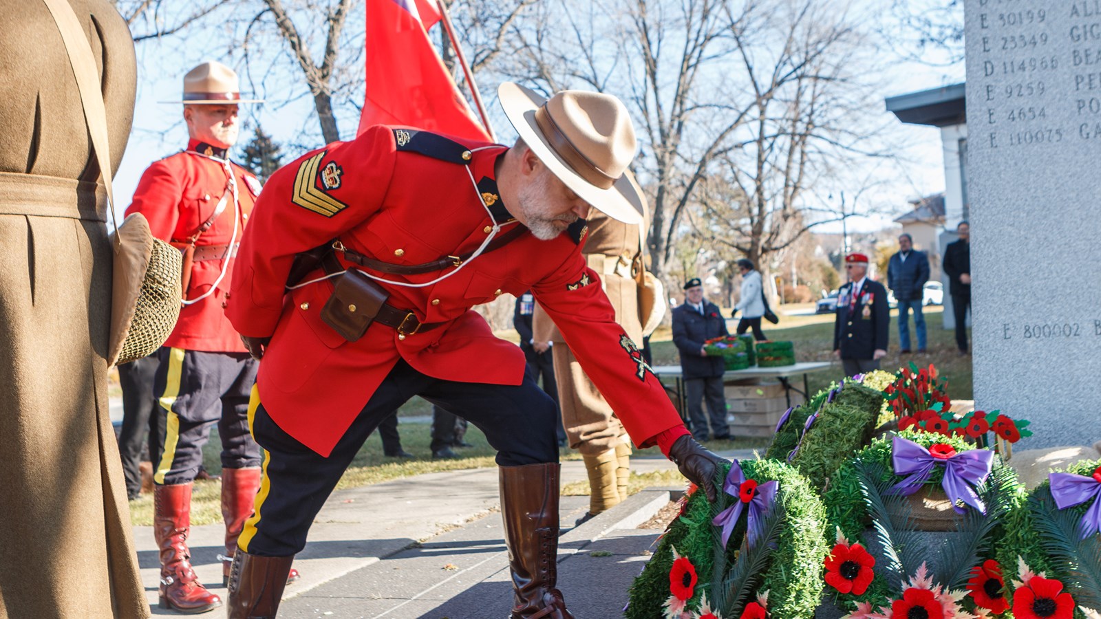 Le maire de Saint-Georges, Claude Morin, le député de Beauce-Sud, Samuel Poulin, le député fédéral de Beauce, Richard Lehoux ont également déposé une couronne, ainsi que des représentants de la Gendarmerie Royale Canadienne et de la Sûreté du Québec.