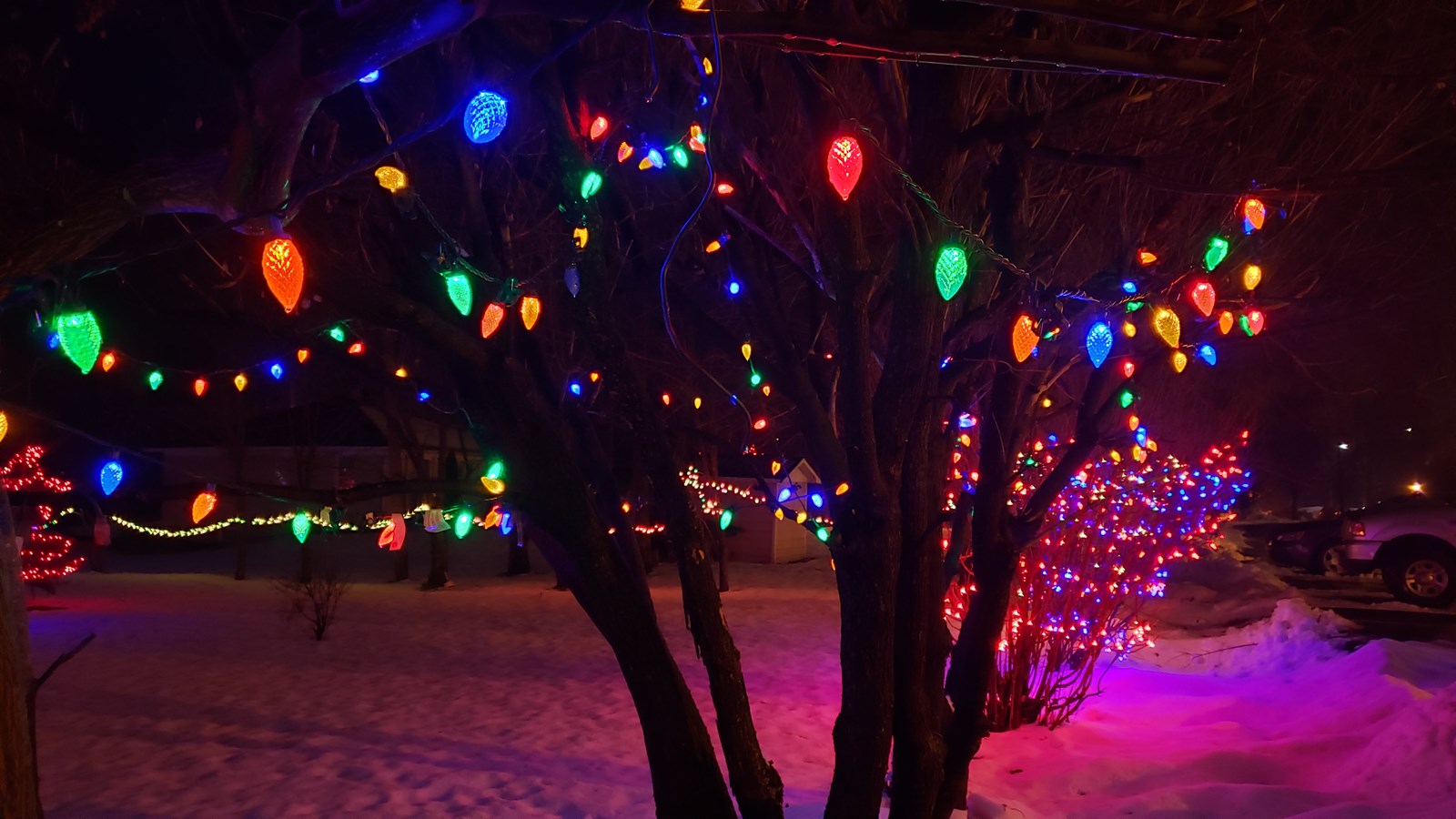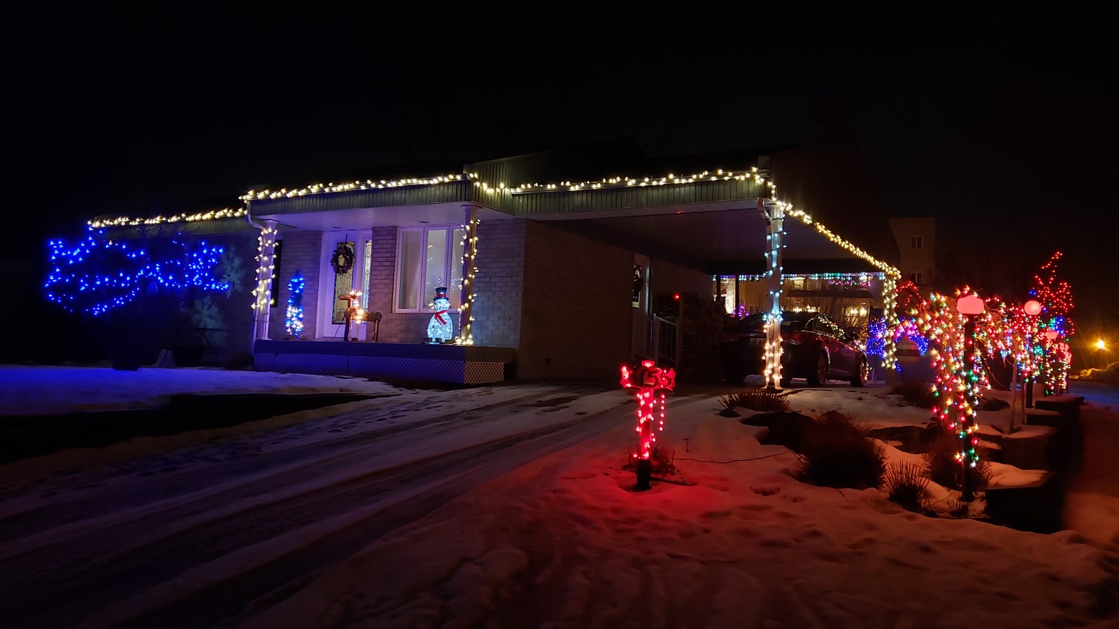 Le terrain brille de mille feux chez Jeannine Poirier qui a terminé d'installer ses nombreuses lumières de Noël.