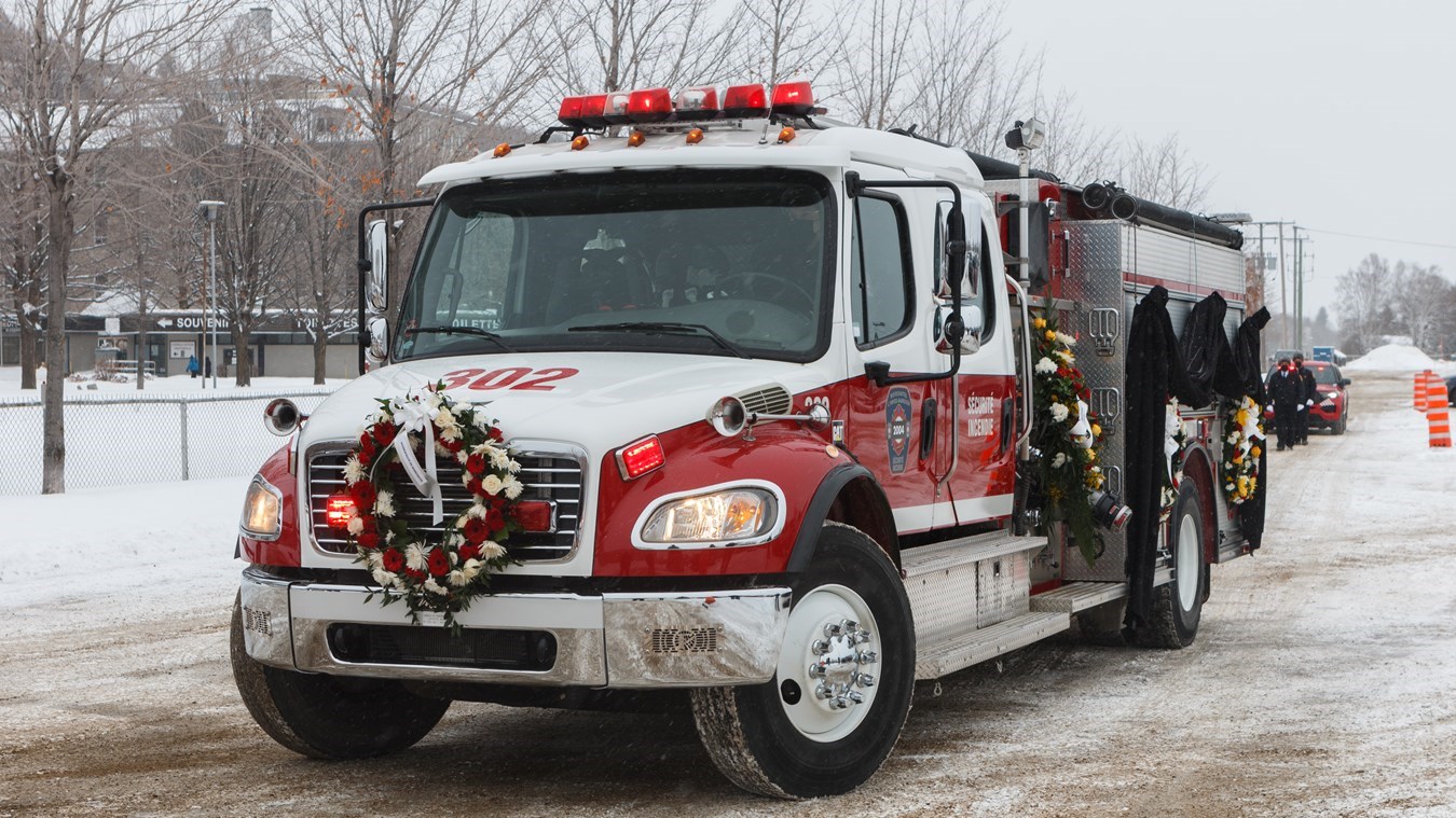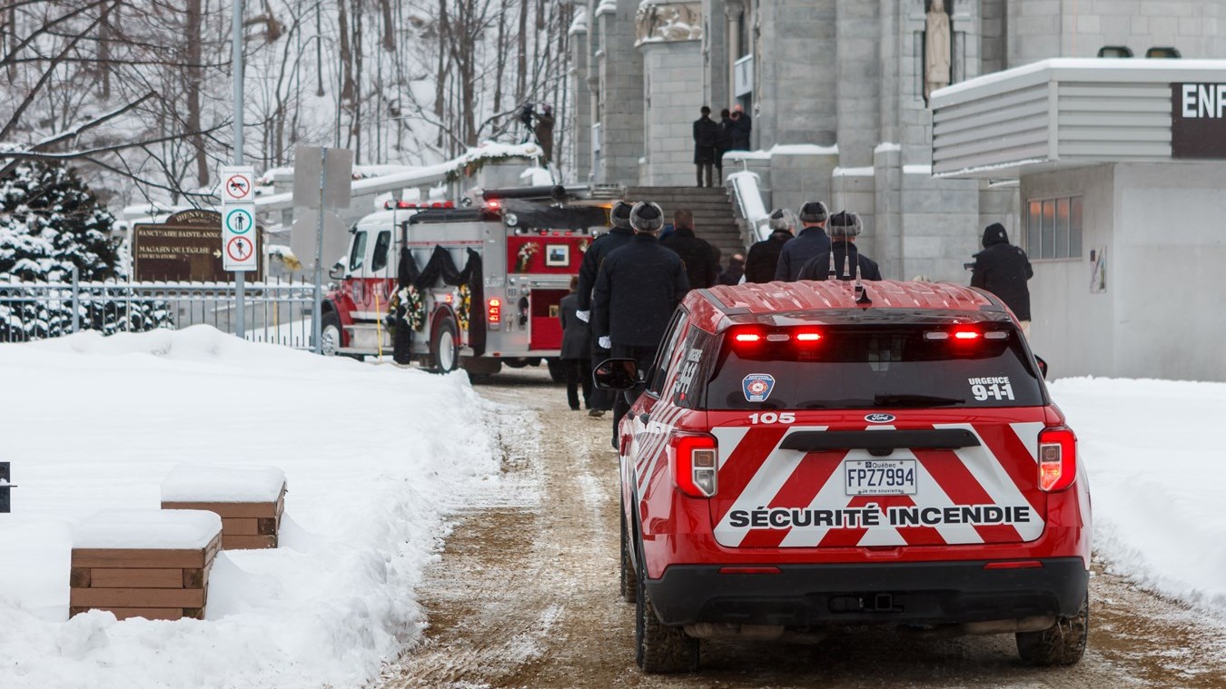 Notre photojournaliste Jessy Pouliot s'est rendu à la basilique de Sainte-Anne-de-Beaupré vendredi dernier, le 7 janvier, pour assister aux funérailles civiques du pompier de Boischatel, Martin Tremblay, décédé dans l'exercice de ses fonctions.