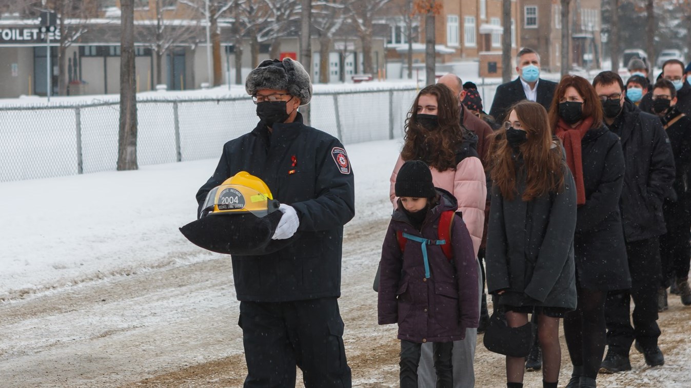 Famille, amis et collègues se sont retrouvés en petit comité ce jour-là afin de souligner le dévouement et le courage de ce pompier de 43 ans, père de trois enfants, qui a malheureusement perdu la vie le 18 décembre dernier lors d'une intervention à Boischatel.