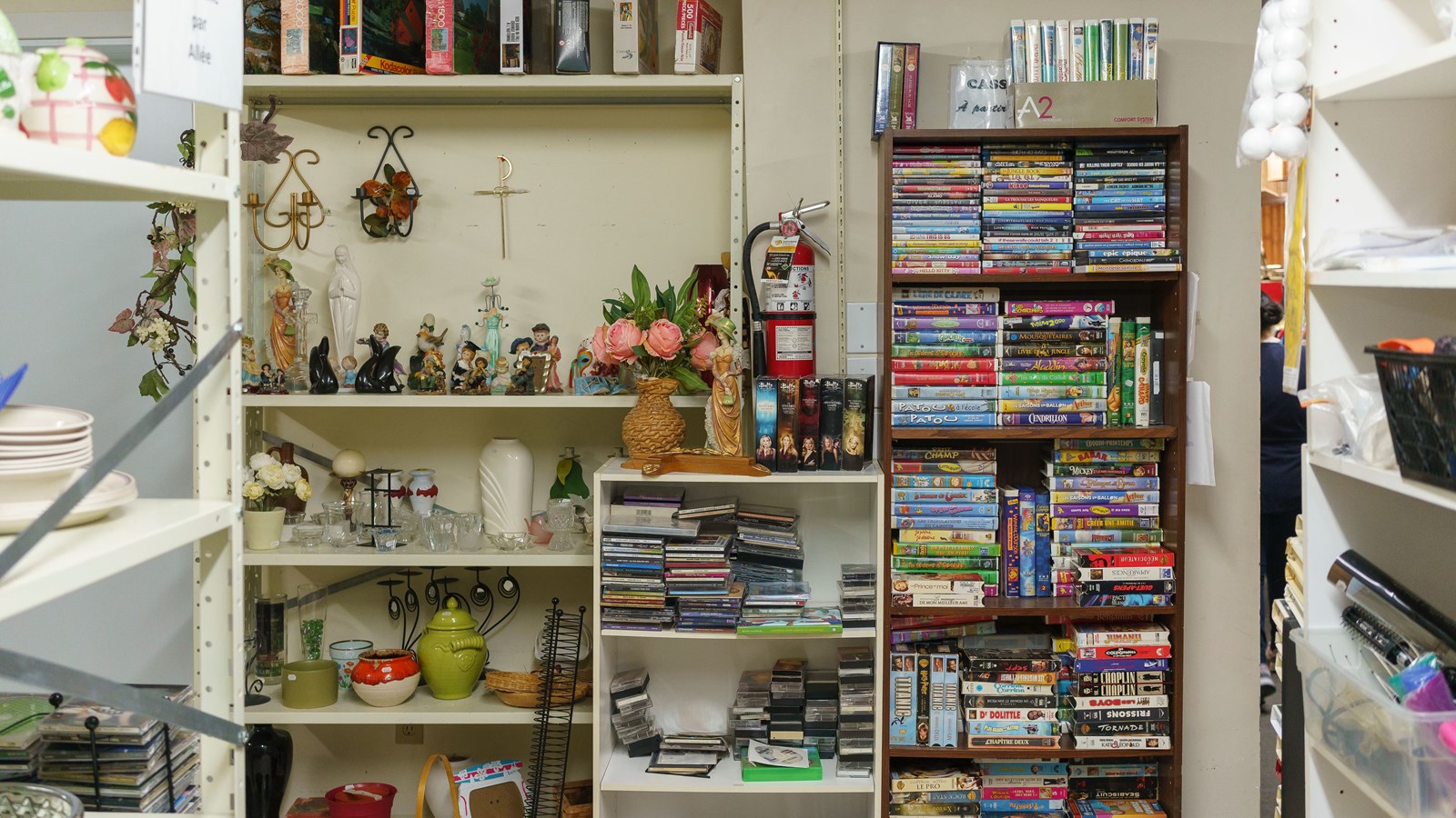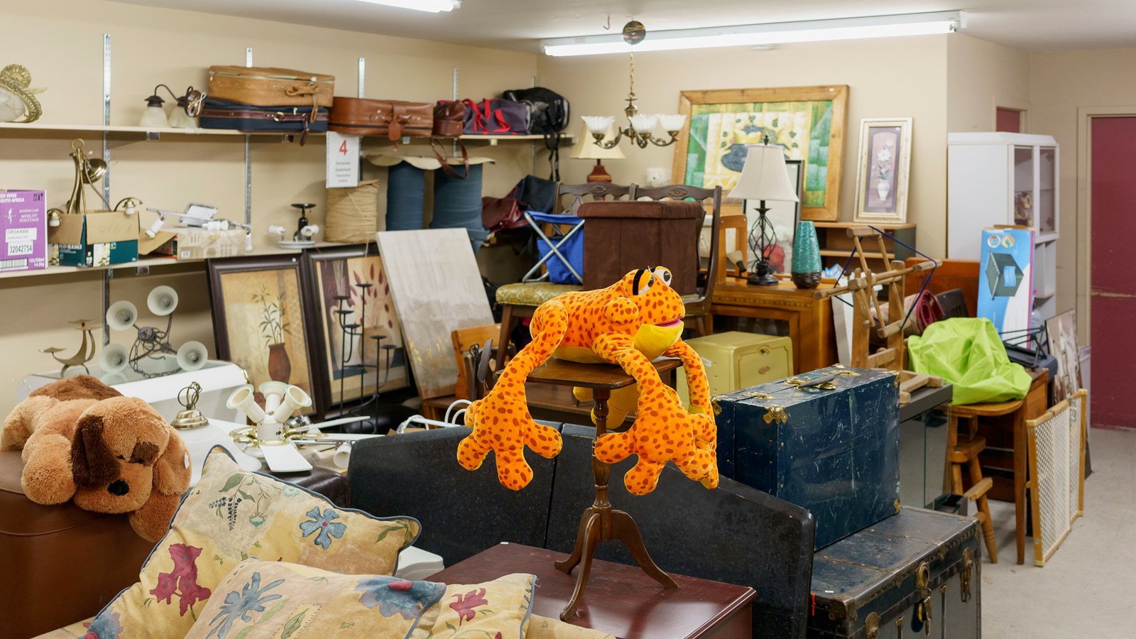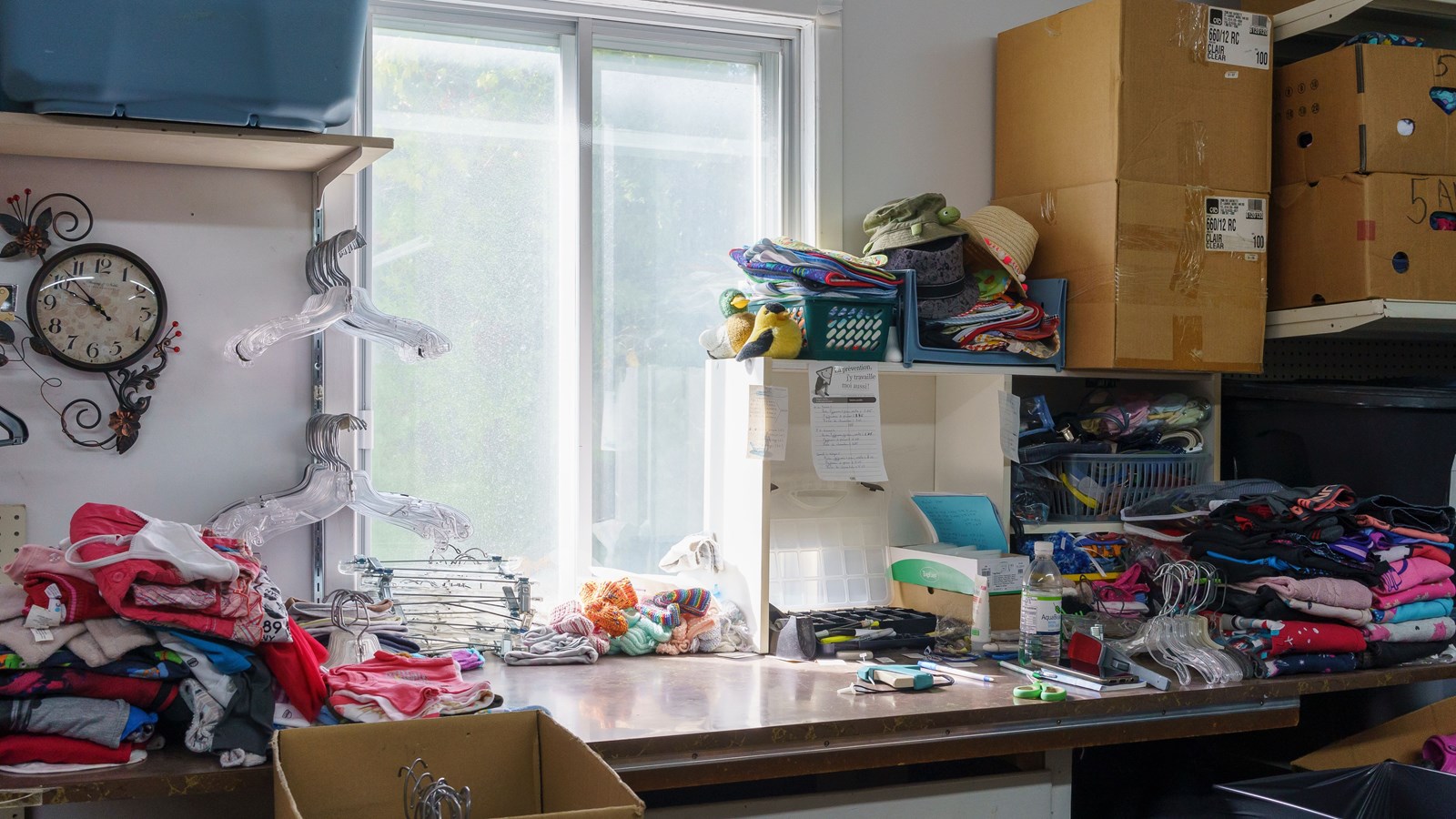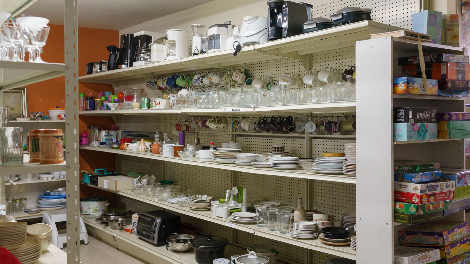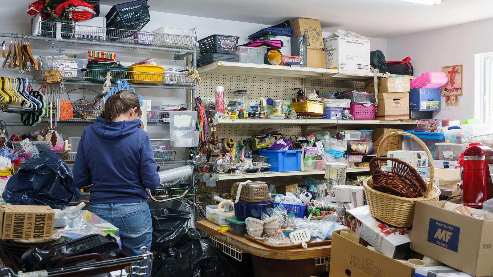 Tout ce qui est « bric-à-brac », ce qui n’est pas des vêtements, est entreposé dans une grande pièce et également trié. Cela peut être des meubles, des bibelots, des jouets, de la décoration, etc.