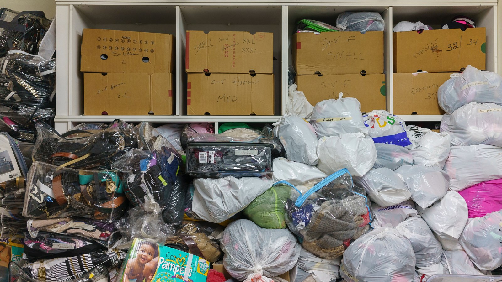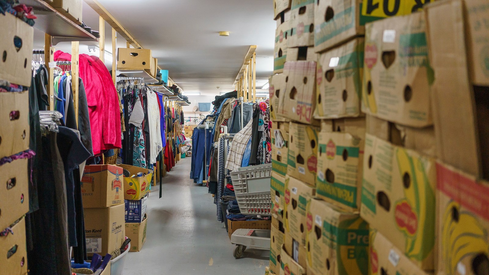 Lorsque ces longues étapes se terminent, les vêtements sont entreposés par saison, par genre, par type, dans le grand local de la Ressourcerie.