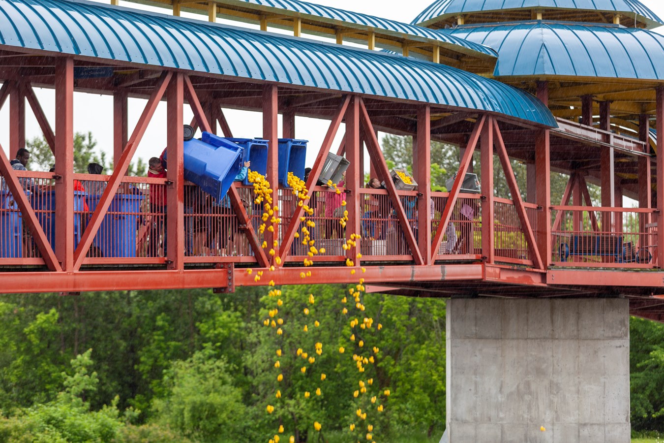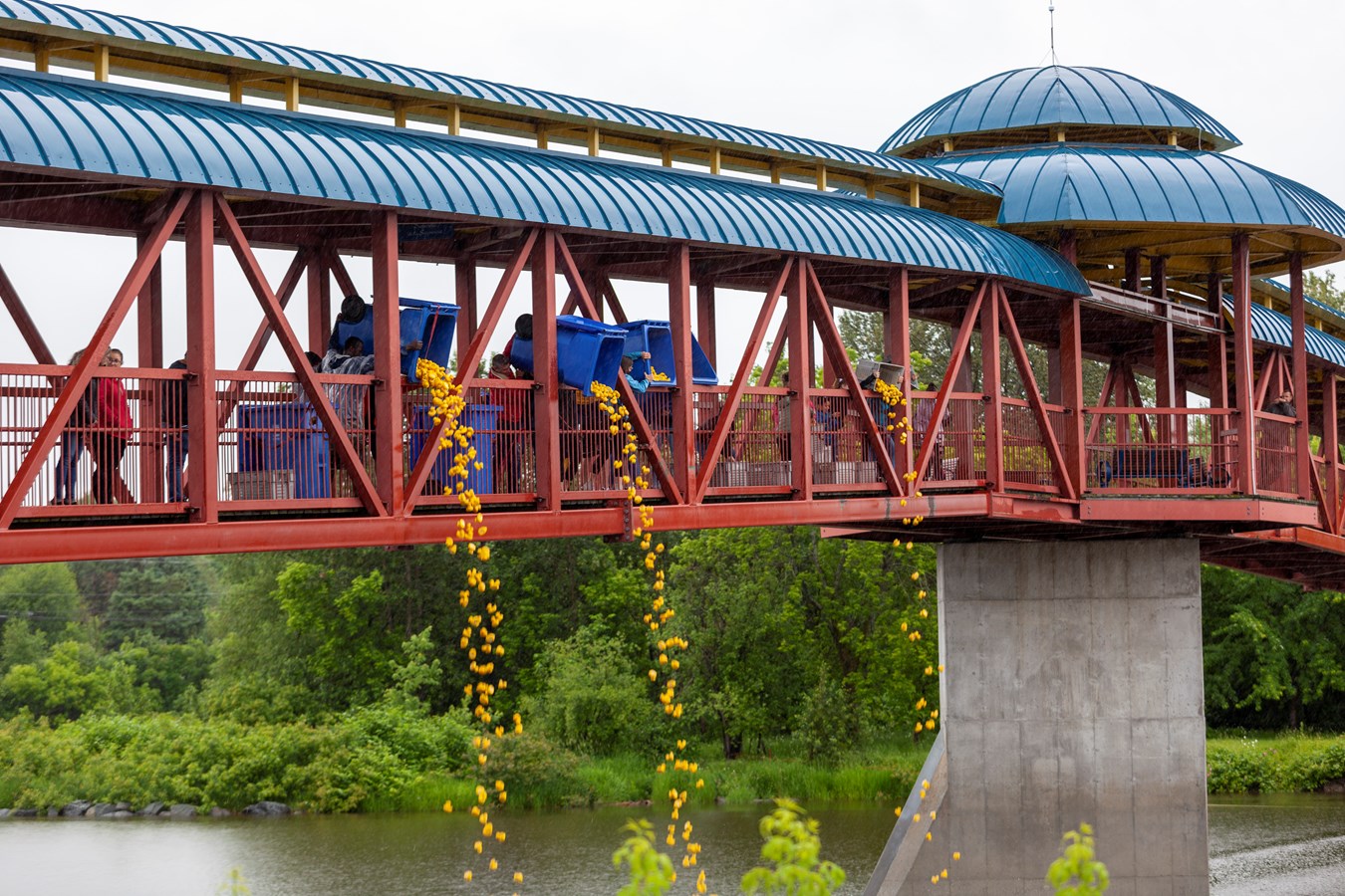 Cela faisait deux ans que les canards en plastique n’avaient pas été lancé dans la rivière Chaudière à Saint-Georges en raison de la pandémie. Un total de 5 000 canards se sont déplacés entre les passerelles et sur ce nombre 4 251 ont trouvé preneur.