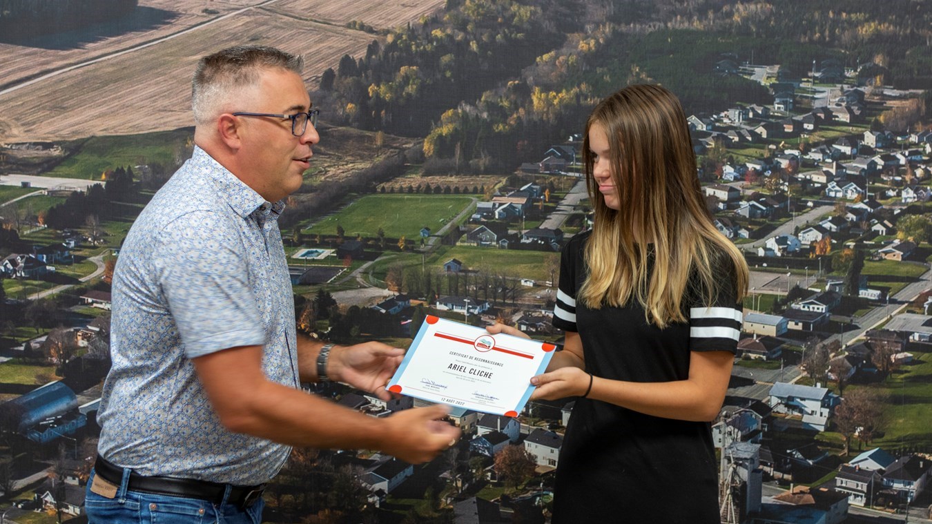 Carl Marcoux, maire de Saint-Elzéar, remet un certificat au nom de la municipalité