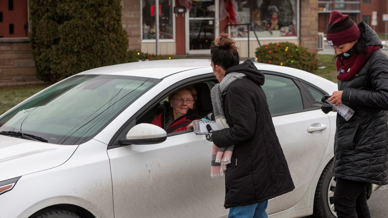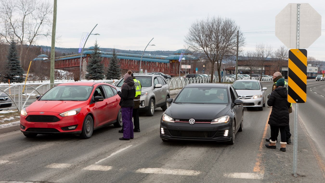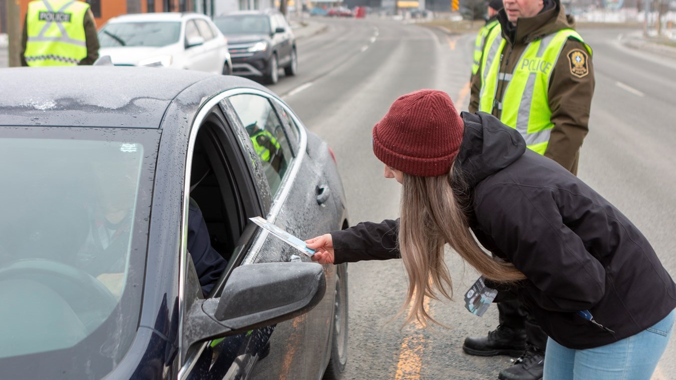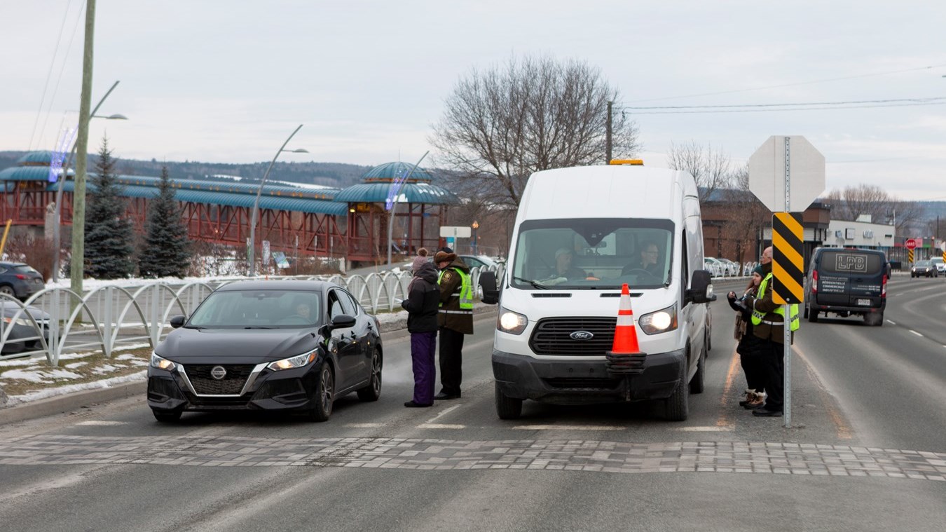 Les agents de police et le personnel de ces organismes s'étaient installés sur le bord de la route près du centre sportif Lacroix-Dutil ce matin et seront à Thetford Mines cet après-midi. Ils interpellent les passants et leur remettent des documents informatifs. L'opération est menée partout sur le territoire de la Sûreté du Québec. Au total, ce sont 89 opérations de sensibilisation auront lieu aujourd'hui.