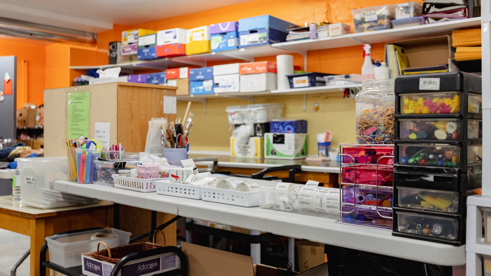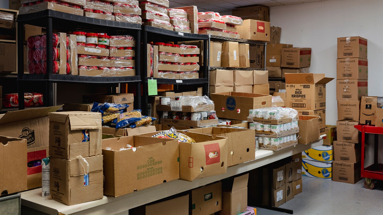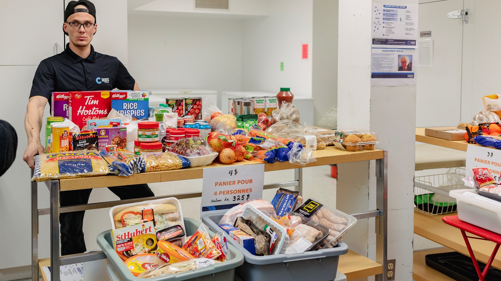 Au premier étage est installée l’aide alimentaire où les personnes dans le besoin peuvent profiter de panier deux fois par mois. « Étant aux études avec deux enfants, je bénéficie moi-même des paniers en aide temporaire renouvelable tous les trois mois, et franchement ce sont de très bon produits. J’avais le choix entre manger et payer mon loyer, donc heureusement que le Comptoir existe pour nous aider », a commenté une bénévole qui est aussi bénéficiaire de l’aide alimentaire. En 2022, 2 505 paniers ont été distribués et 419 familles ont pu être aidées. Une salle de taille de chiffons a aussi été créée afin de donner une deuxième vie aux vêtements non vendus, en les fournissant aux entreprises ou aux garages de la région.