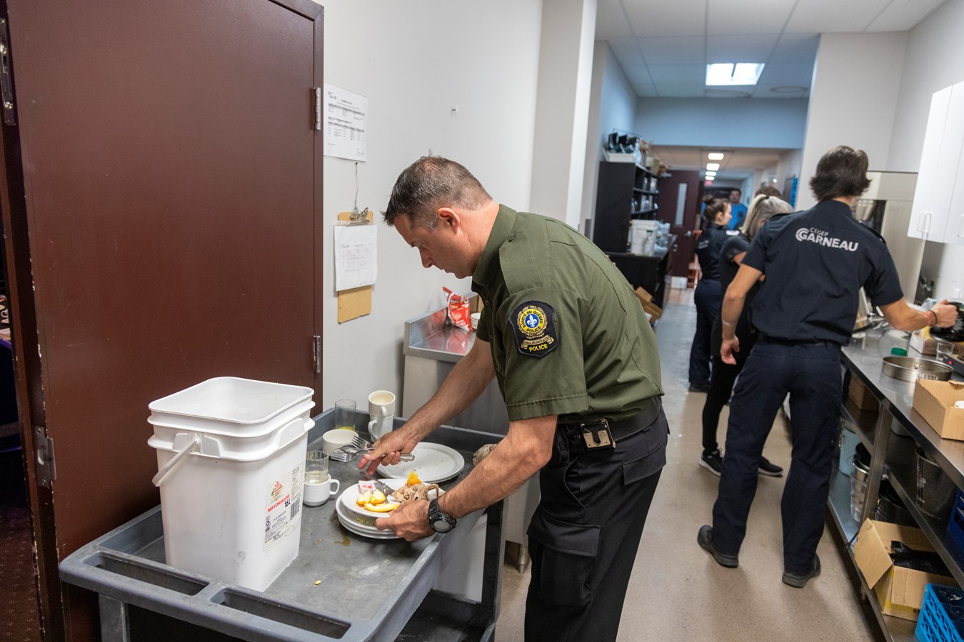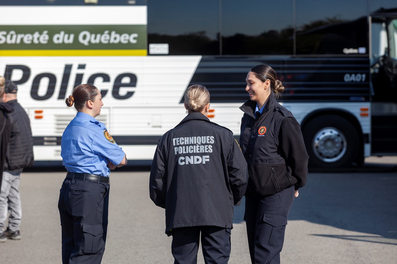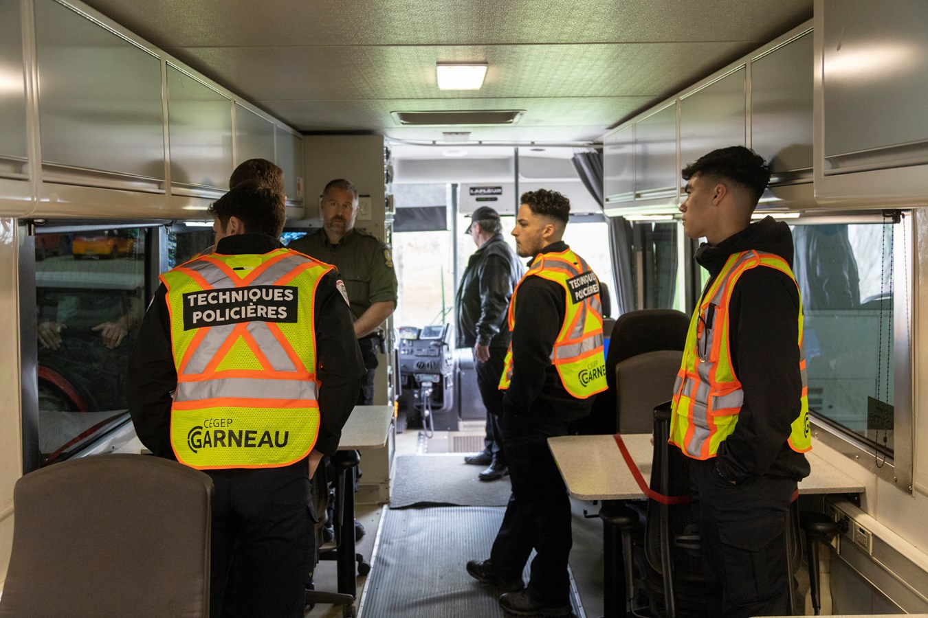 Une quarantaine d’étudiants en techniques policières du CEGEP Garneau et du Campus Notre-Dame-de-Foy sont venus prêter main-forte à la cinquantaine de policiers qui assuraient entre autres le service tout au long de l’avant-midi.