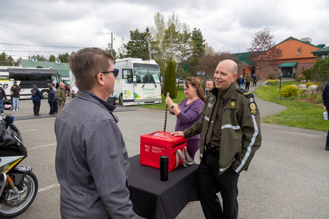 L’évènement, qui s’est tenu à la Cache à Maxime de Scott, a regroupé plus de 850 personnes. Celles-ci ont eu la chance de rencontrer divers membres de la Sûreté du Québec, dont les policiers du Groupe tactique d’intervention, un policier membre de L’ACDO (Association canadienne des dons d’organes) et un patrouilleur motard. Plusieurs véhicules d’urgence de la Sûreté du Québec se trouvaient sur les lieux, notamment le poste de commandement mobile, un véhicule blindé, une moto et le véhicule utilisé par les membres de l’ACDO ont satisfait les plus curieux.